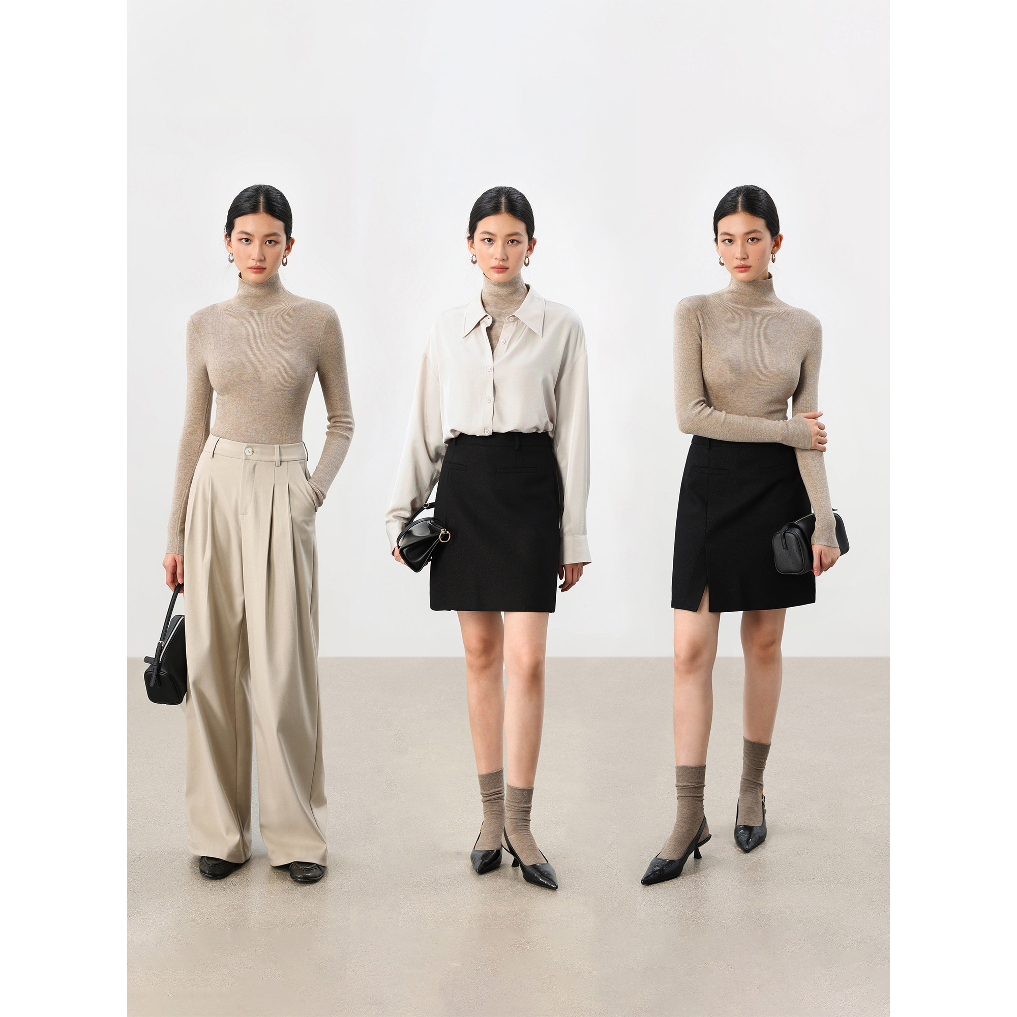 打底衫 高领长袖 女气质高级感通勤针织上衣 丝光羊毛 JESTOMS