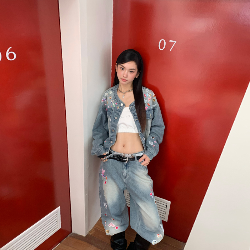 Y2K印花牛仔外套女秋季 西部乐园 圆领短外套 FlyTheTruth FTT