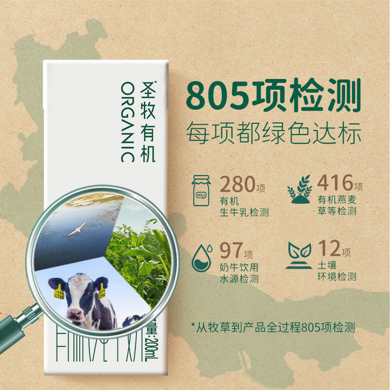 20盒早餐奶环保装 圣牧有机纯牛奶全脂牛奶200ml 3.3g蛋白 臻选
