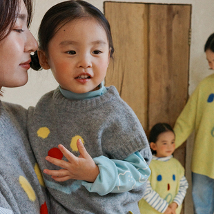 保暖亲子装 男女宝针织衫 papa爬爬秋冬季 母女母子款 表情毛衣
