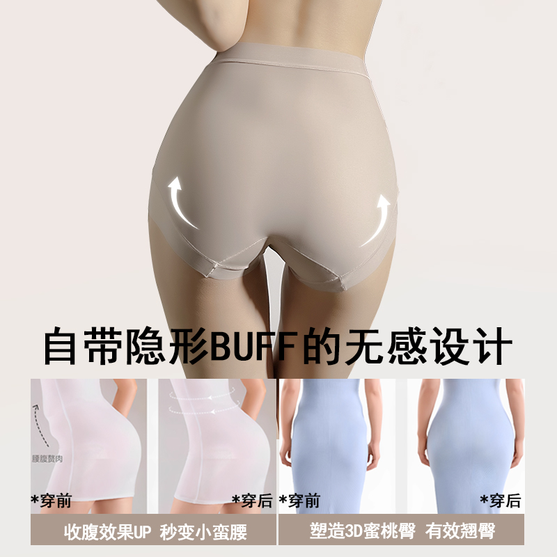 透气提臀女士平角裤 无痕冰丝薄款 女2025新款 草本初色高腰收腹内裤