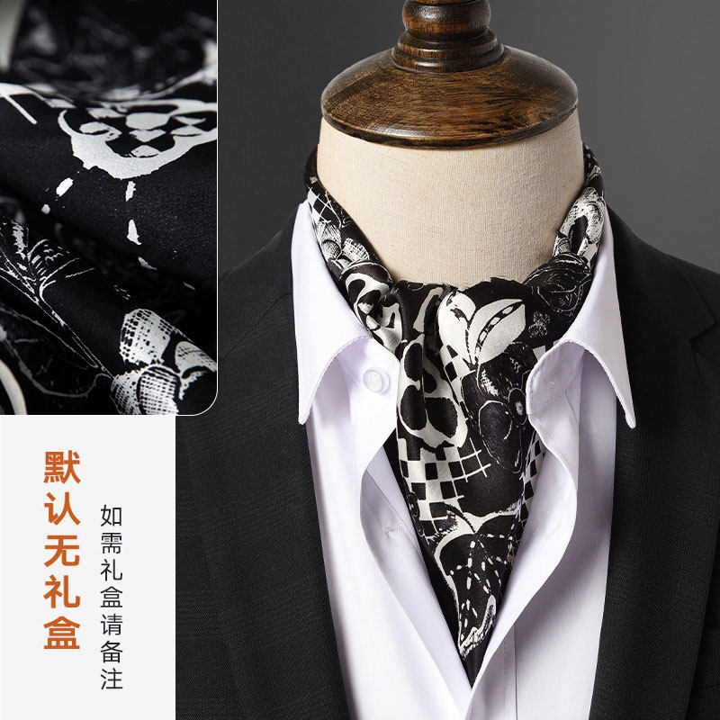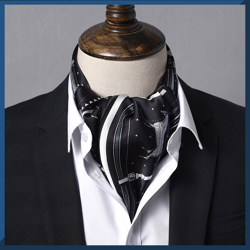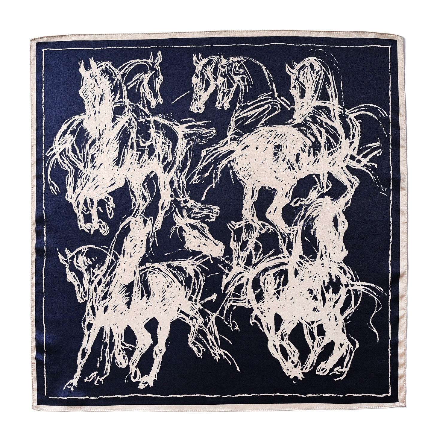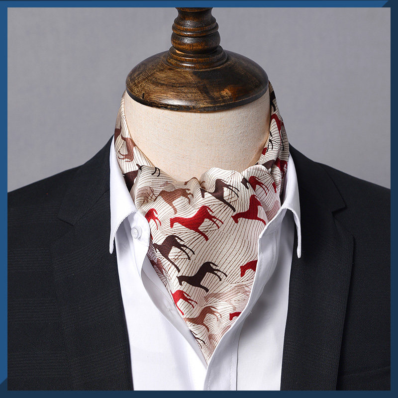 衬衫 抽象骏马 搭西装 小方巾2025新款 护颈领巾小围巾 真丝丝巾男士