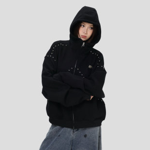 外套男女 「拼接铆钉拉链卫衣」宽松连帽开衫 NOPASS 国潮原创美式