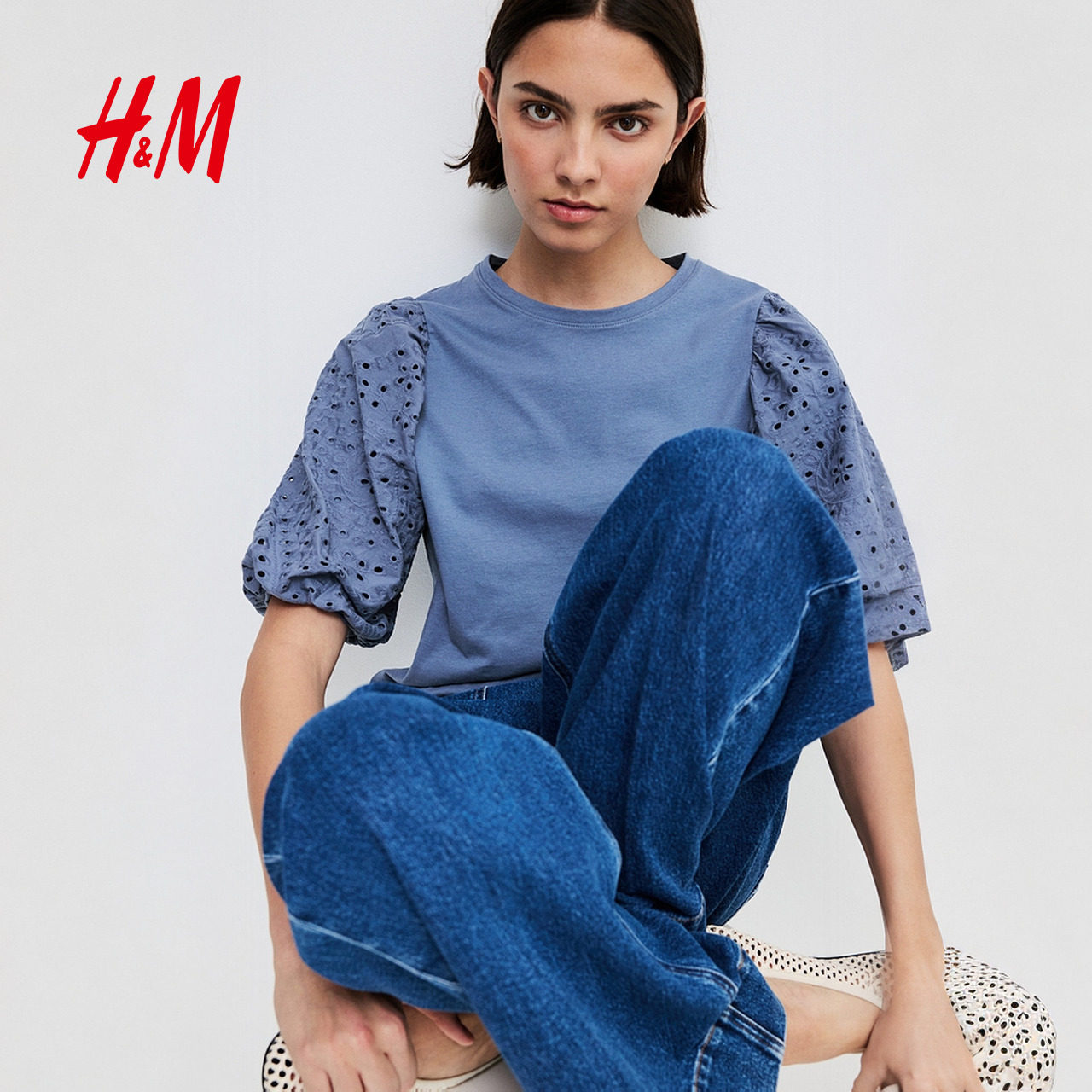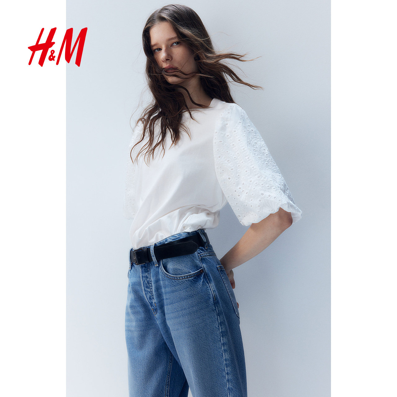 衬衫 短袖 2025年秋季 洋气宽松灯笼袖 通勤上衣1274436 新款 HM女装