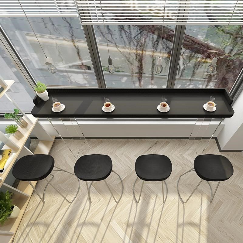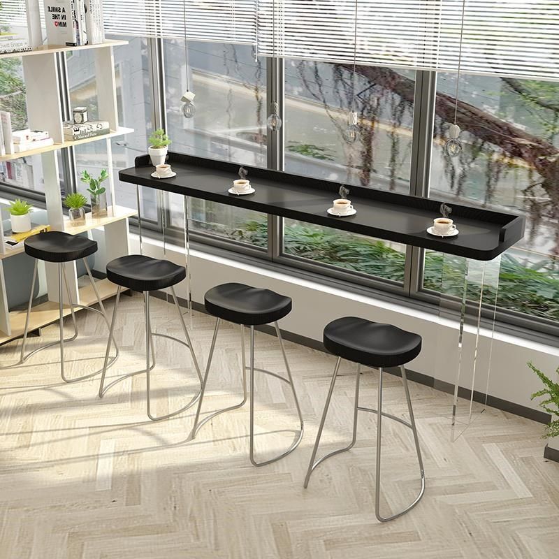 亚克力实木吧台桌黑色带围边商用靠窗悬浮透明高脚桌吧台桌椅组合