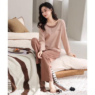 全棉薄款 秋季 休闲假两件秋冬高级感家居服 纯棉长袖 睡衣女士春秋款