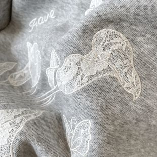 小C家 春休闲宽松拼接蕾丝绣花刺绣设计感上衣 灰色卫衣女2026新款