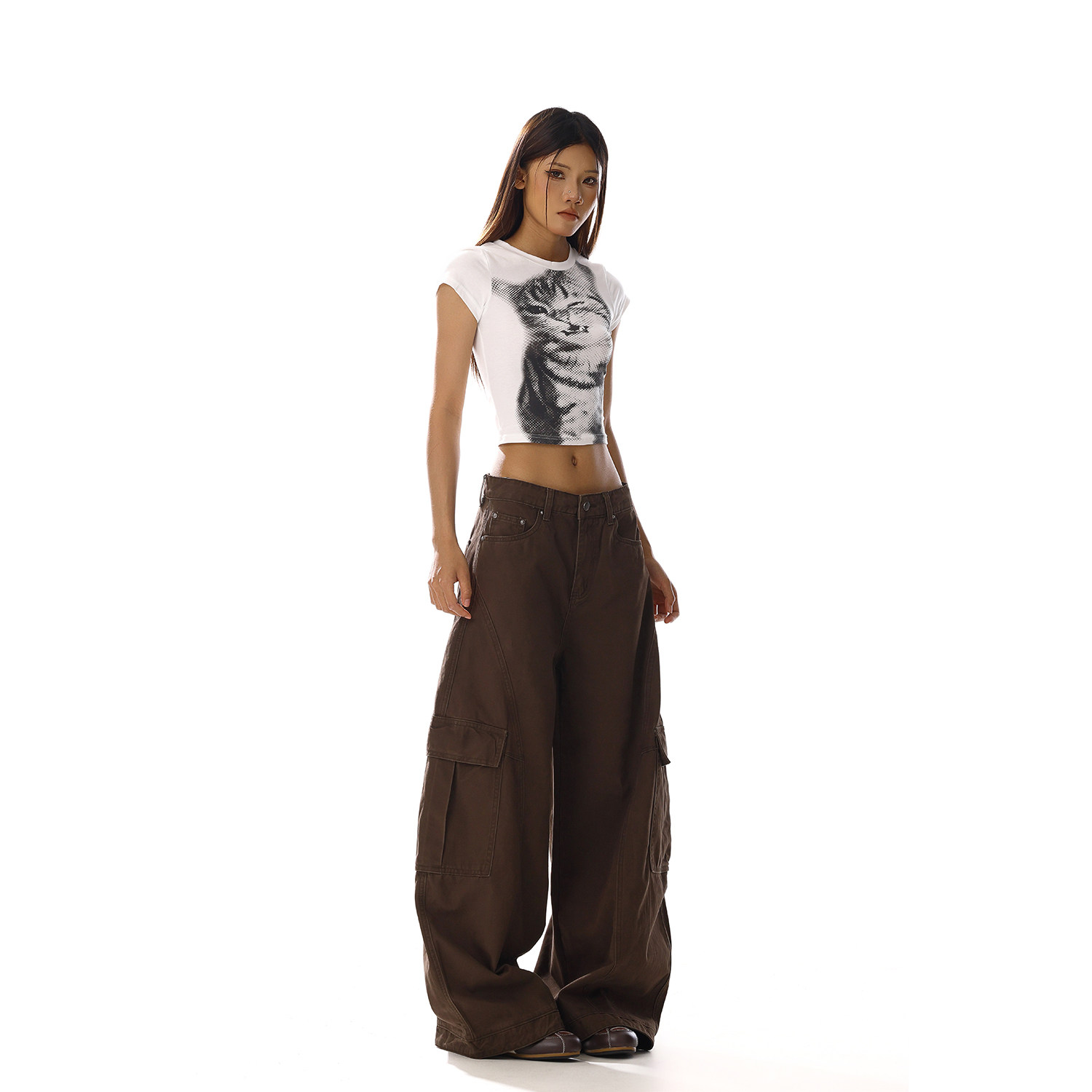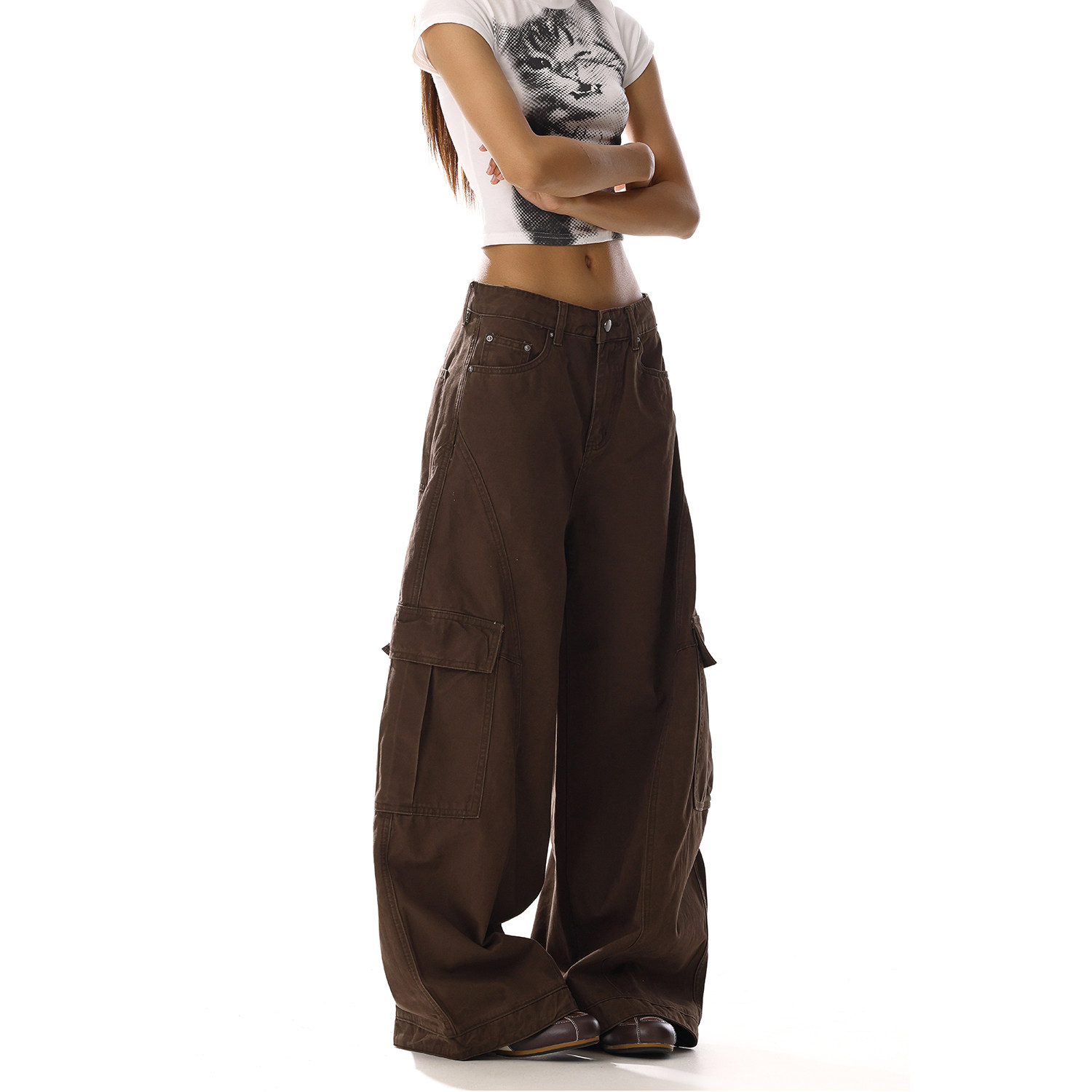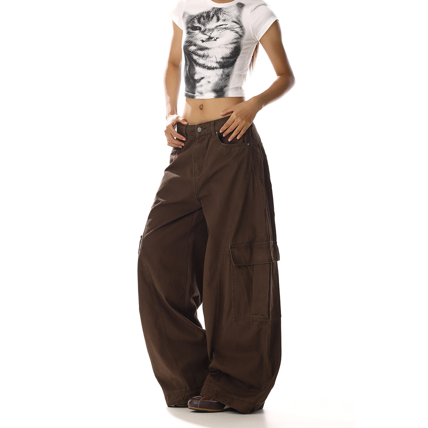 男女潮牌宽松休闲直筒弯刀阔腿牛仔裤 裤 子 复古解构设计感工装 美式
