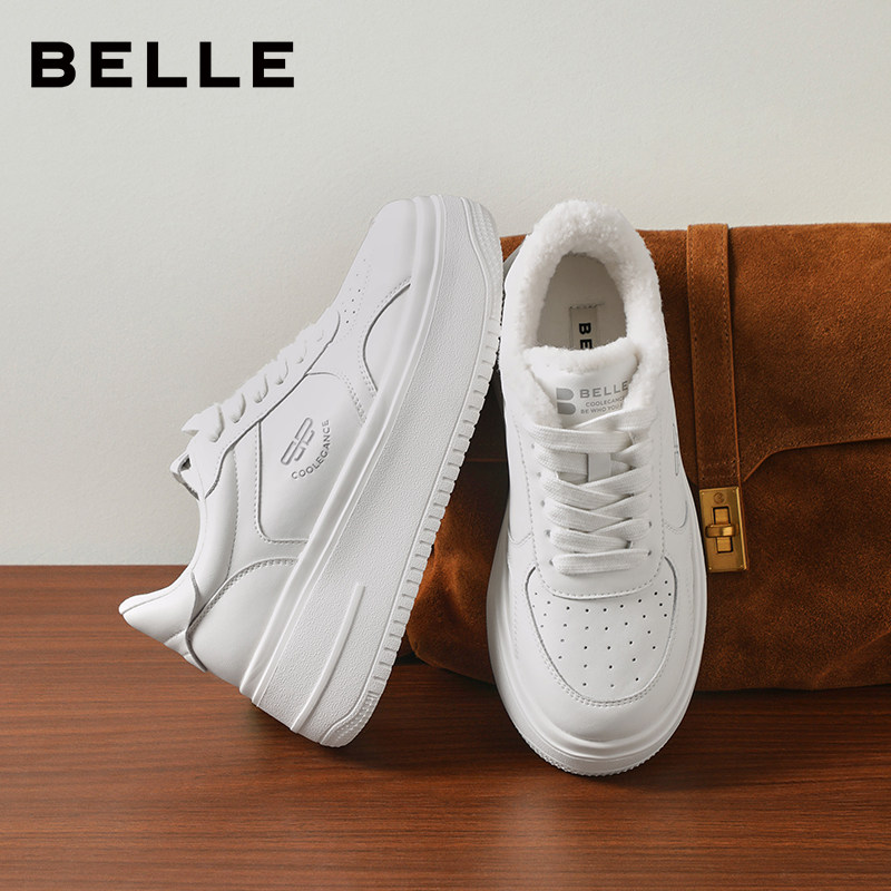 子E7J1DAM6 增高绒里百搭运动休闲板鞋 百丽步步糕厚底小白鞋 女新款