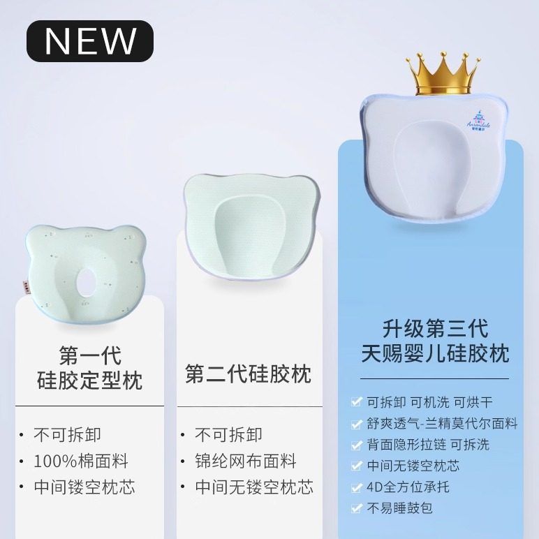 婴儿定型枕新生儿纠正头型矫正扁头宝宝防偏头0到6个月 3硅胶枕头