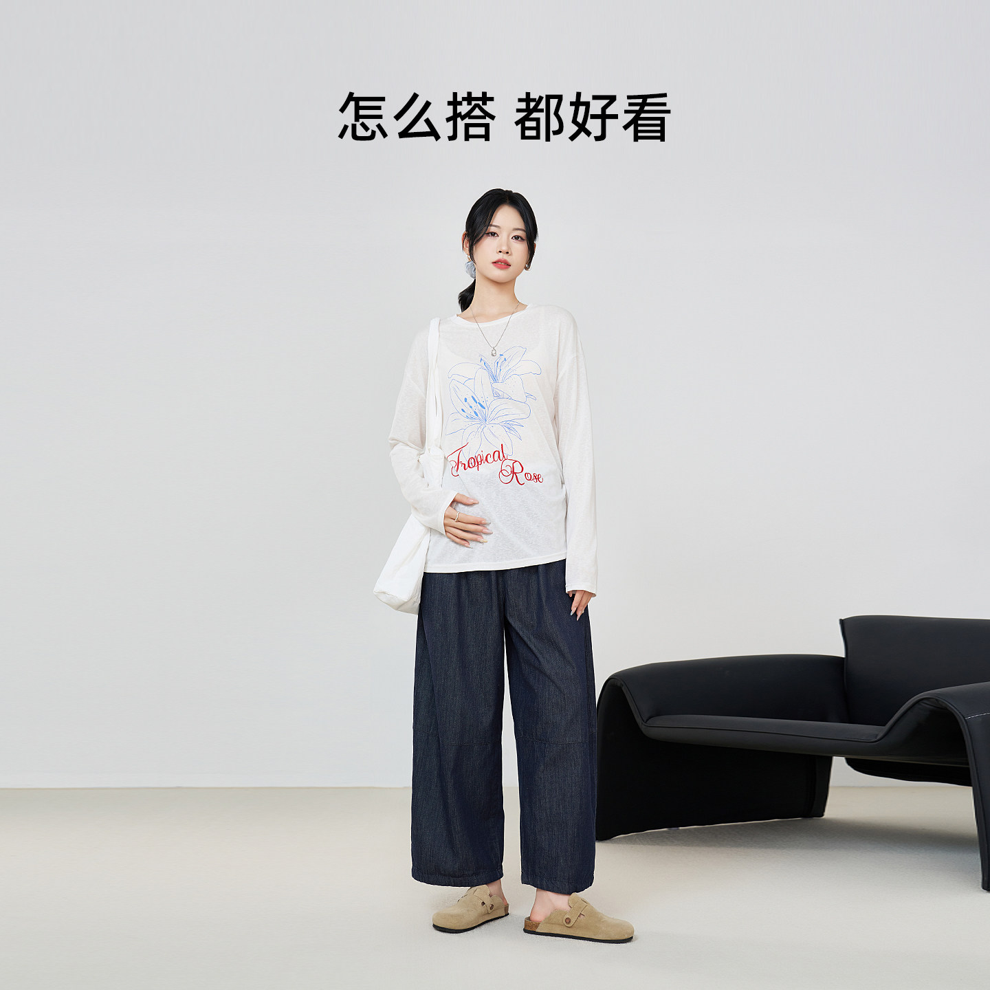 子春装 仿牛仔休闲直筒裤 春秋外穿小个子春季 ellieluke孕妇阔腿裤
