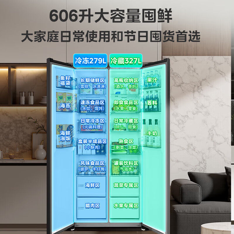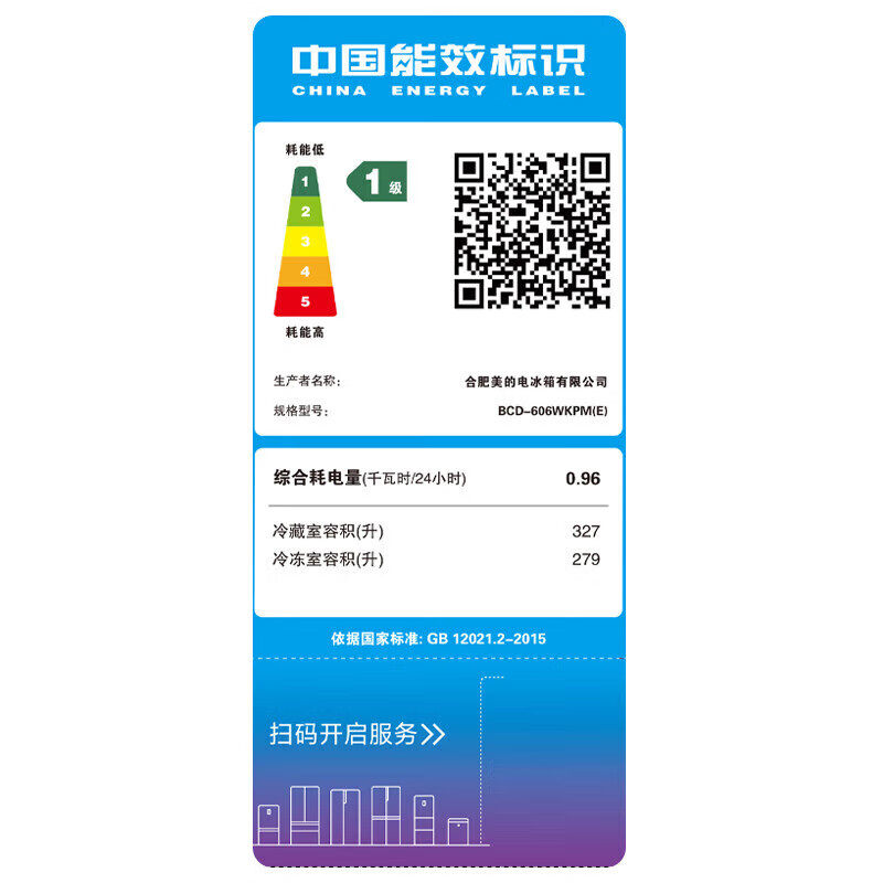 Midea 606WKPM BCD 对开门大容量双变频风冷一级冰箱 美