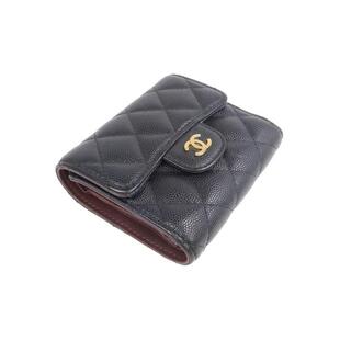 中古Chanel香奈儿女A级95新trifold wallet三折钱包牛皮短钱包