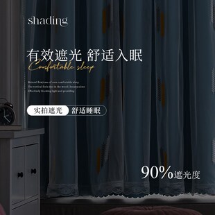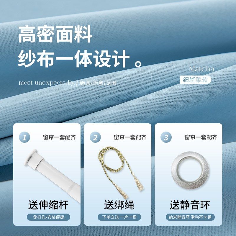 窗帘免打孔安装 送伸缩杆一整套卧室遮光飘窗双层带纱梦幻帘公主风