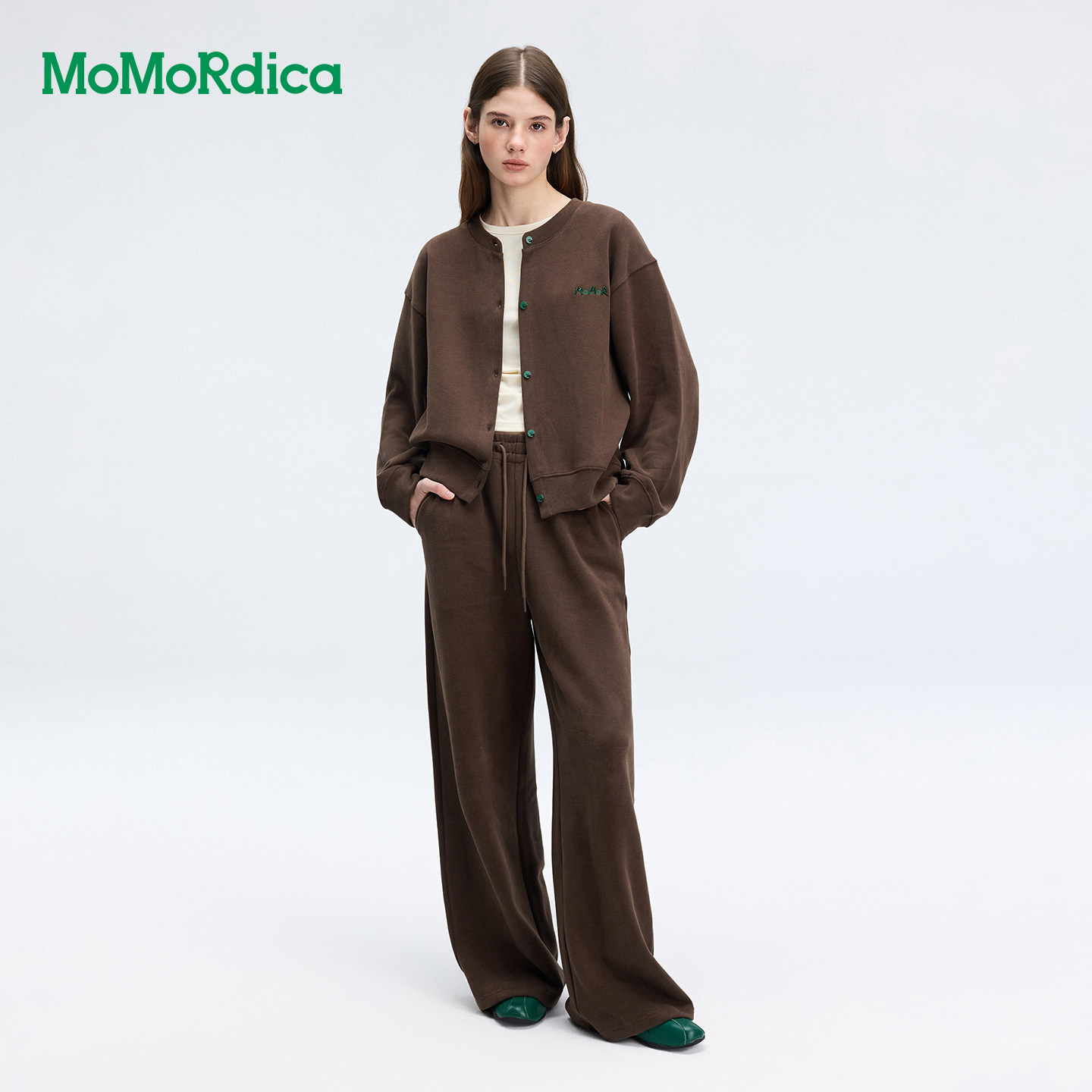 休闲运动风卫衣外套搭配阔腿休闲长裤 Momordica2026春新款 时尚