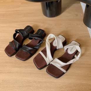 复古配裙子罗马一字拖外穿拖鞋 凉鞋 凉拖女厚底2026新款 葡萄苏法式