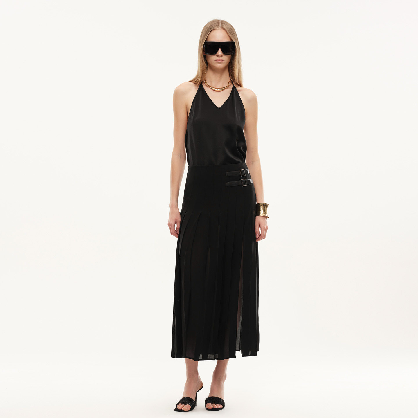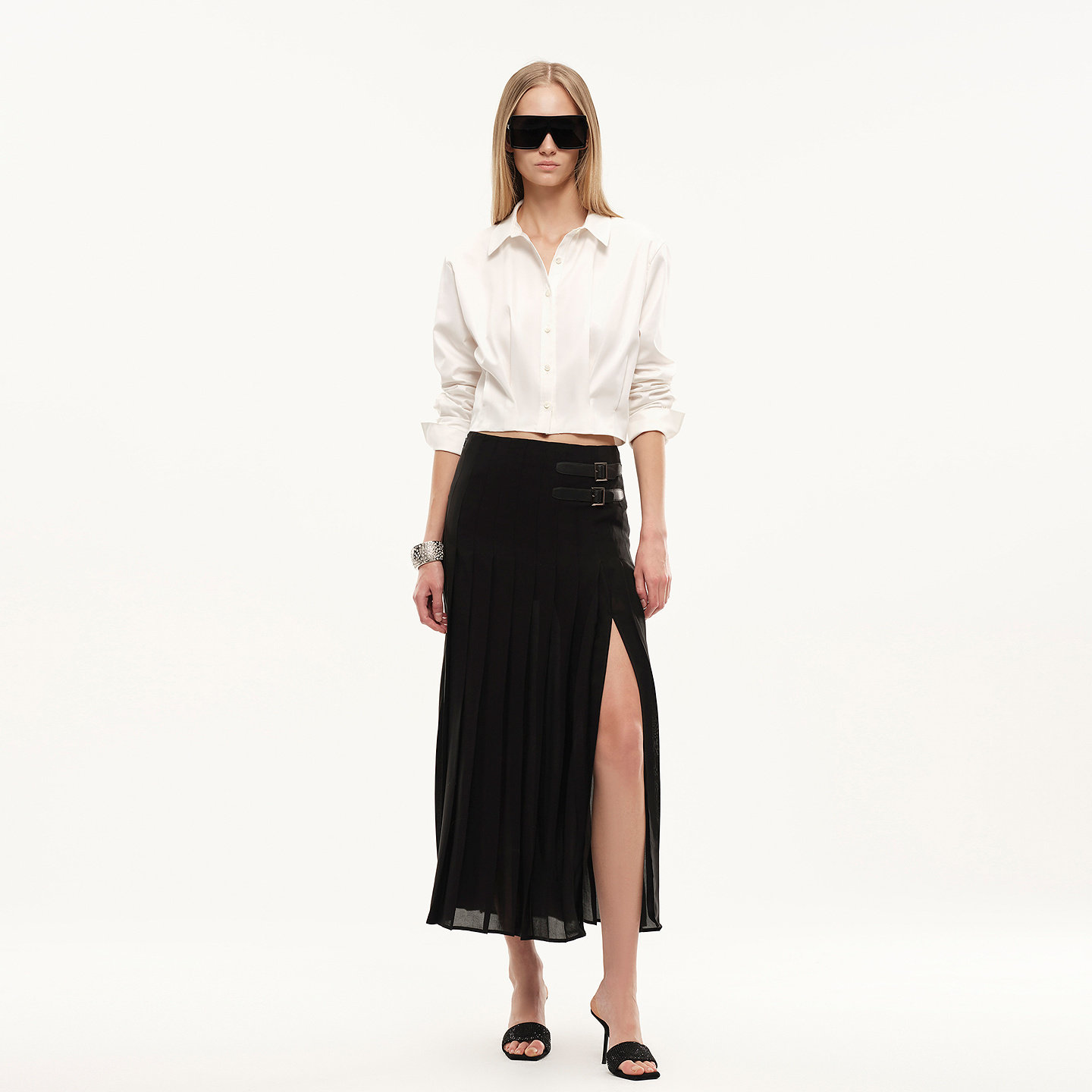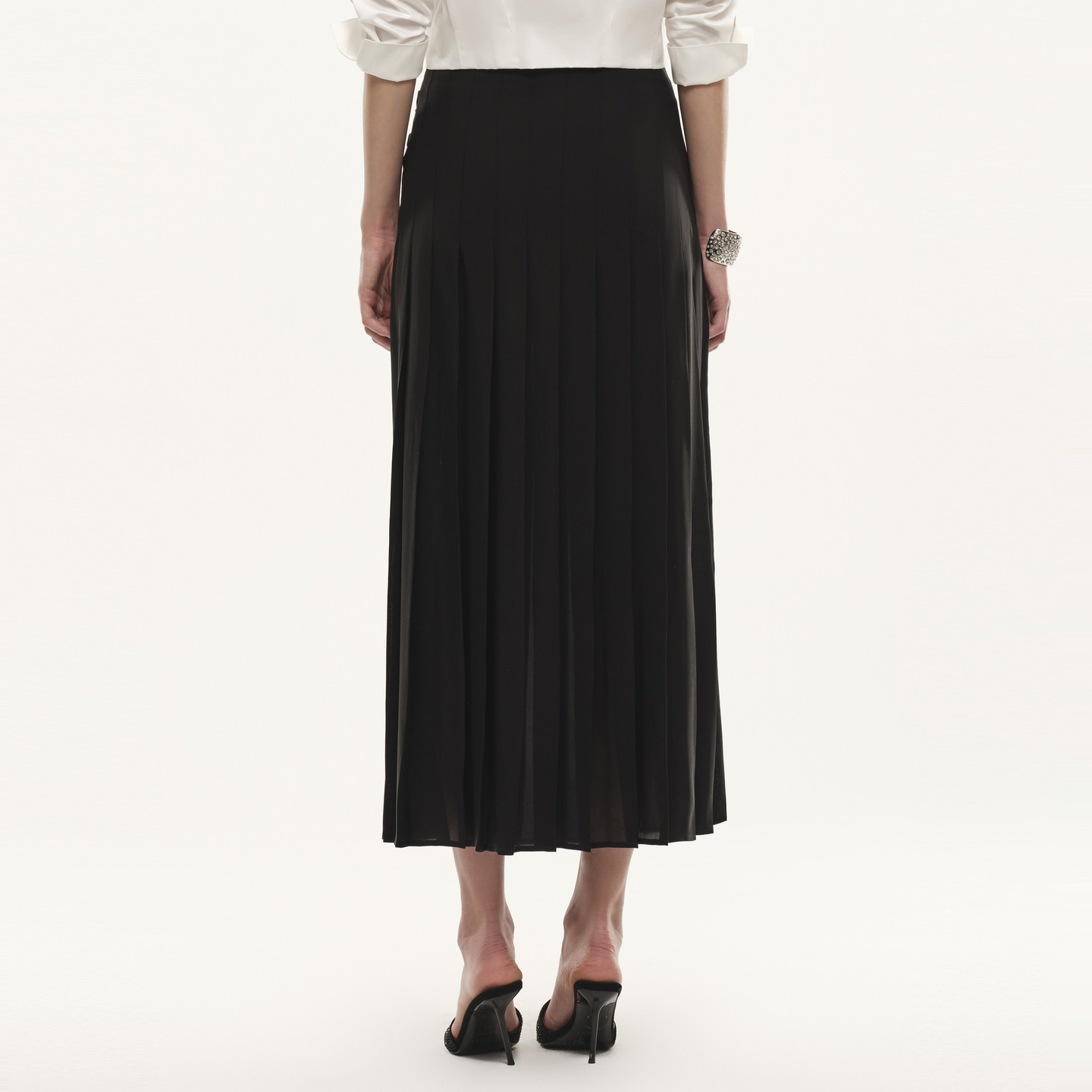 Wang轻盈感醋酸薄纱侧开衩百褶半裙 Vera Fabrique