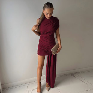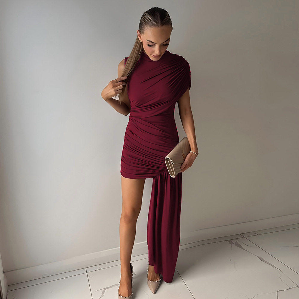 skirt欧美修身 Sleeveless short cinching 不规则包臀连衣裙 hip