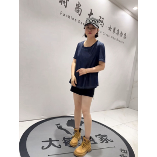 立体剪裁天丝牛仔T恤小衫 女装 加肥加大码 3286女权贵族2026夏新款