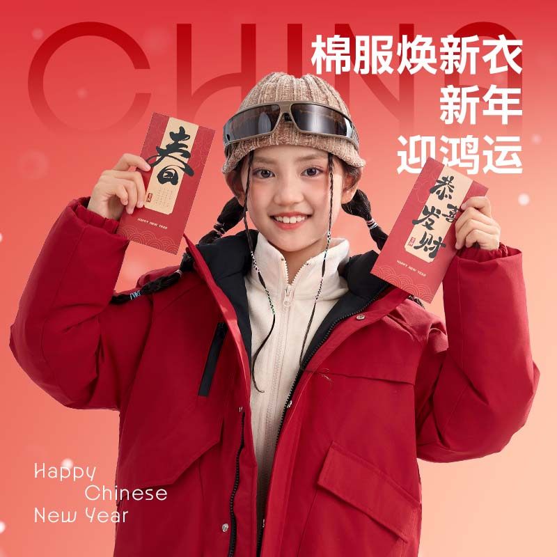 真维斯童装 加厚新年拜年服男童红色喜庆上衣 儿童夹棉外套大童冬季