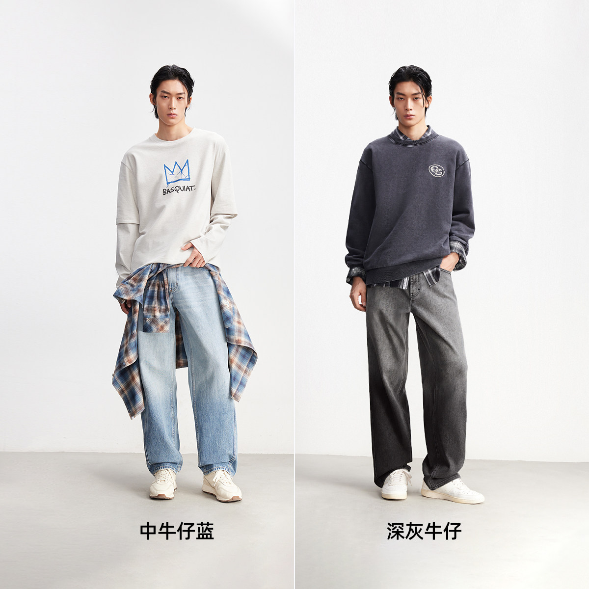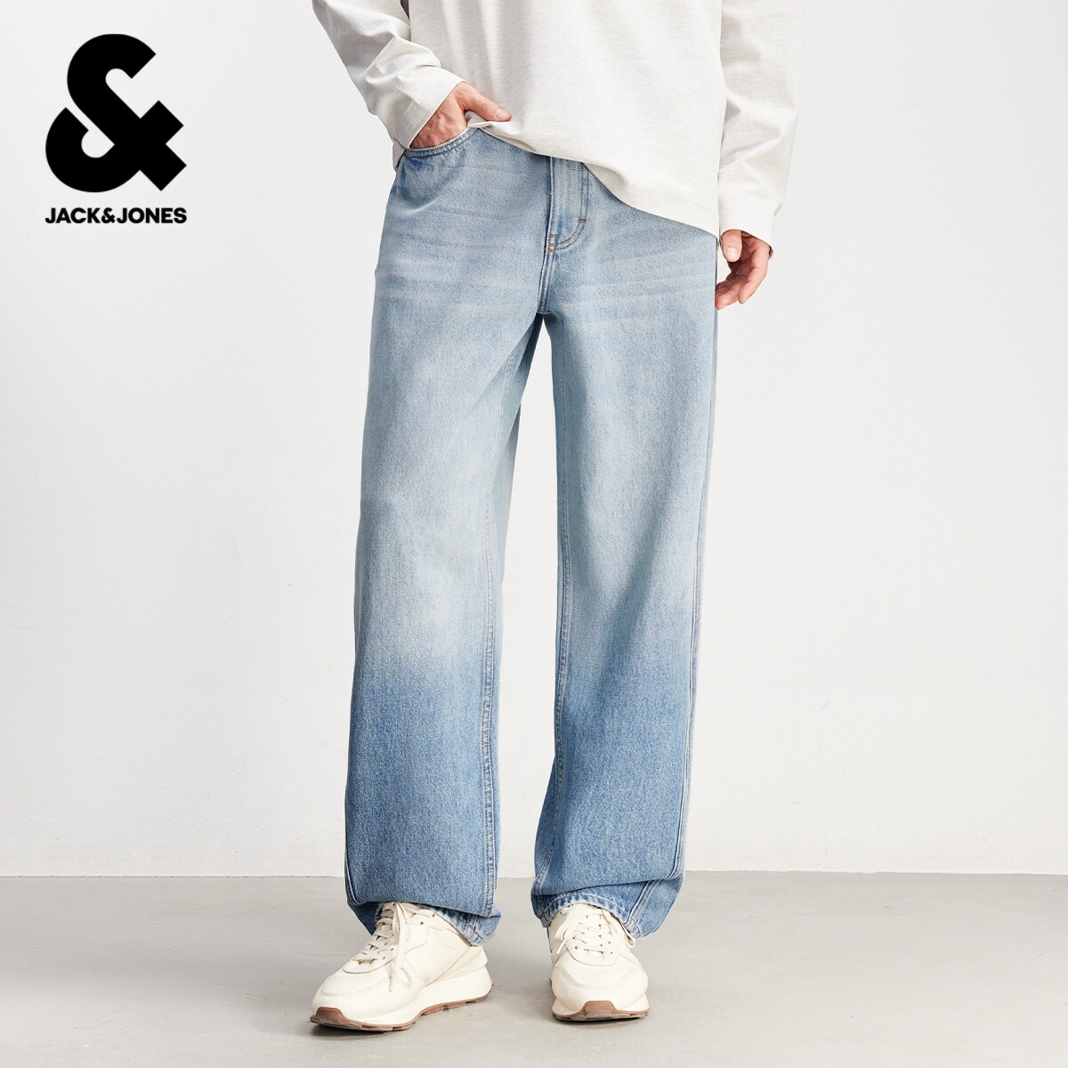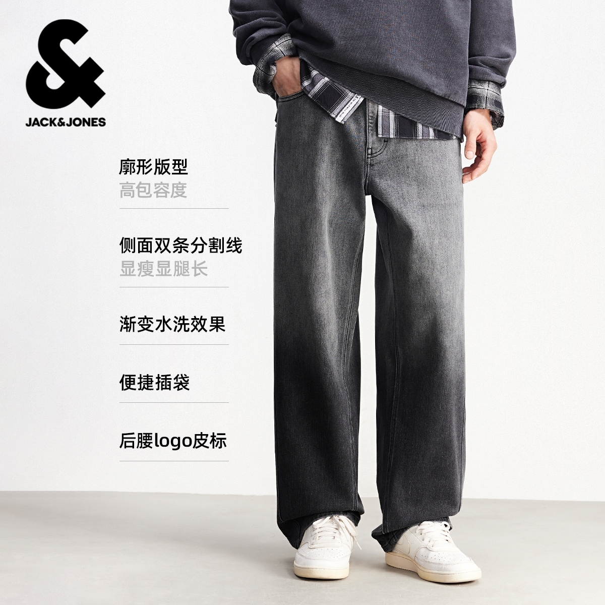 男款 牛仔裤 宽松美式 弯刀渐变阔腿裤 子 907杰克琼斯男装 长裤 春季