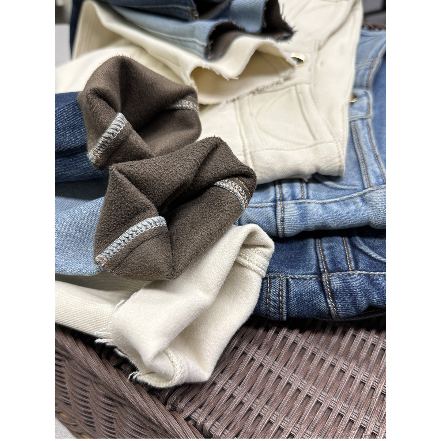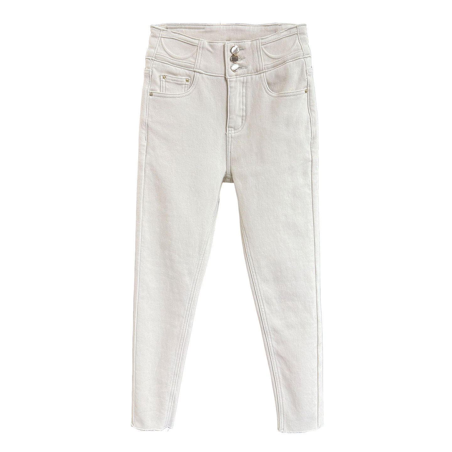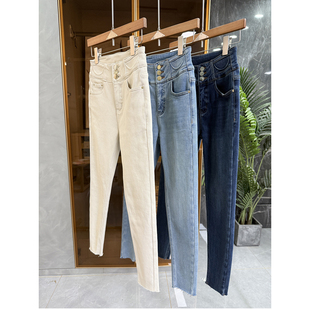 收腹提臀 M0309981 修身 女 加绒三扣牛仔九分小脚裤 小个子