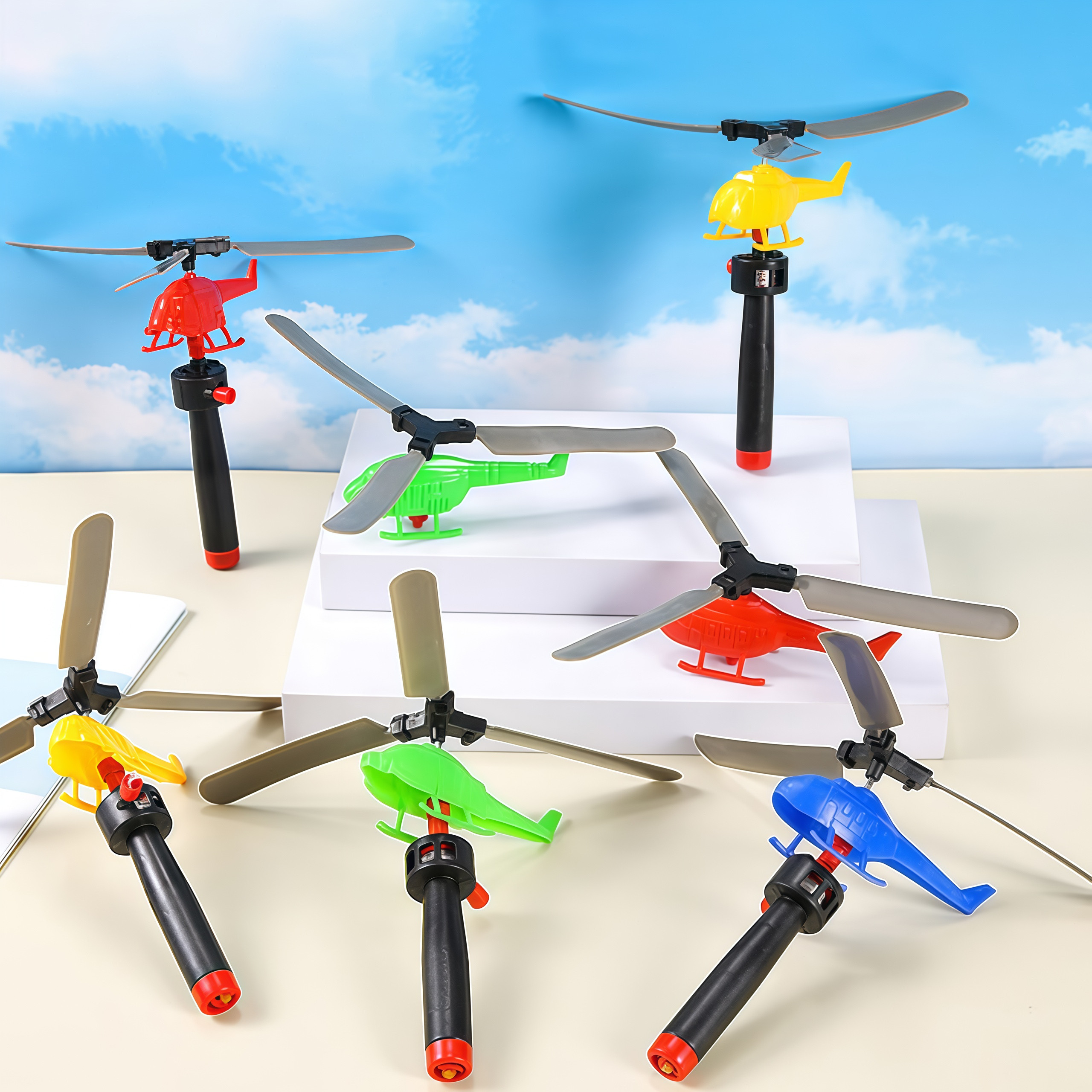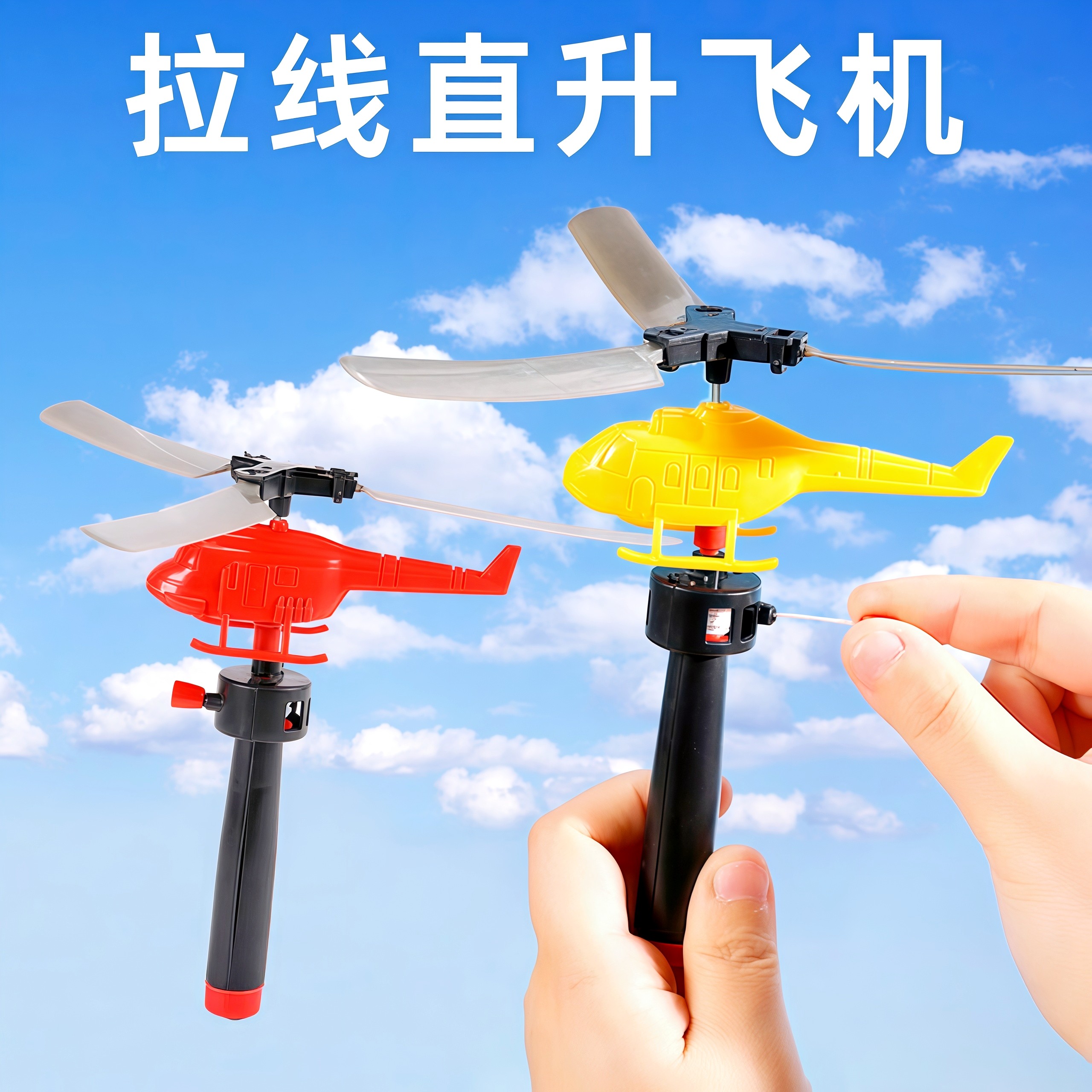 手柄拉线动力直升飞机手持飞机户外拉绳竹蜻蜓儿童8090怀旧小玩具