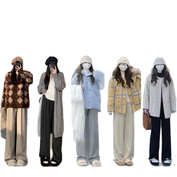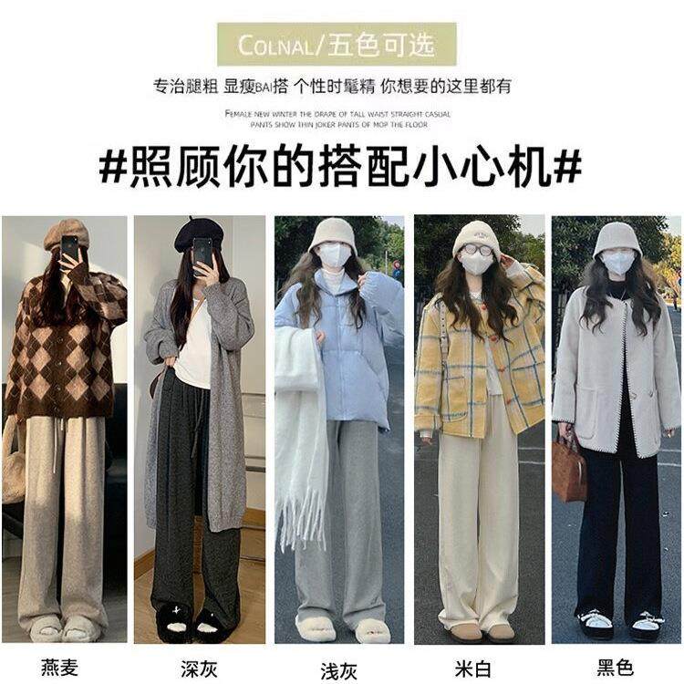高腰垂感休闲小个子针织慵懒宽松阔腿裤 灰色糯米裤 女春秋2025新款