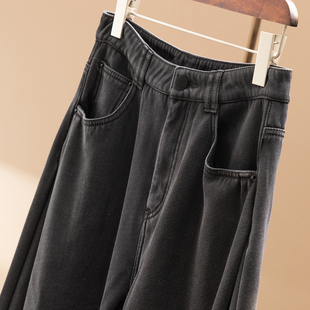 直筒显瘦马蹄阔腿裤 女秋冬新款 烟灰加绒微喇牛仔裤 自留很难不爱