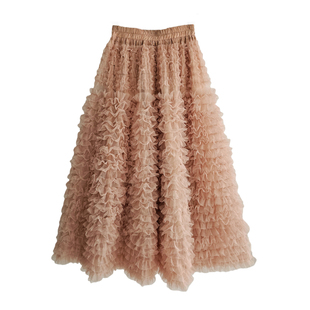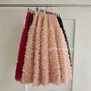 韩系公主甜美风网纱蛋糕裙褶皱层叠多层次感半身裙蓬蓬裙仙女长裙
