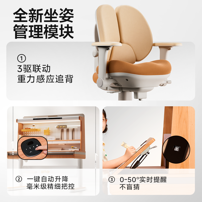 护童P0儿童学习家用书桌可升降小学生写字实木大白桌课桌椅子套装
