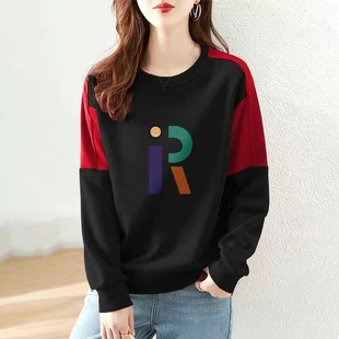 打底衫 卫衣女春秋百搭大码 上衣 纯棉撞色长袖 清仓捡漏外贸出口韩版