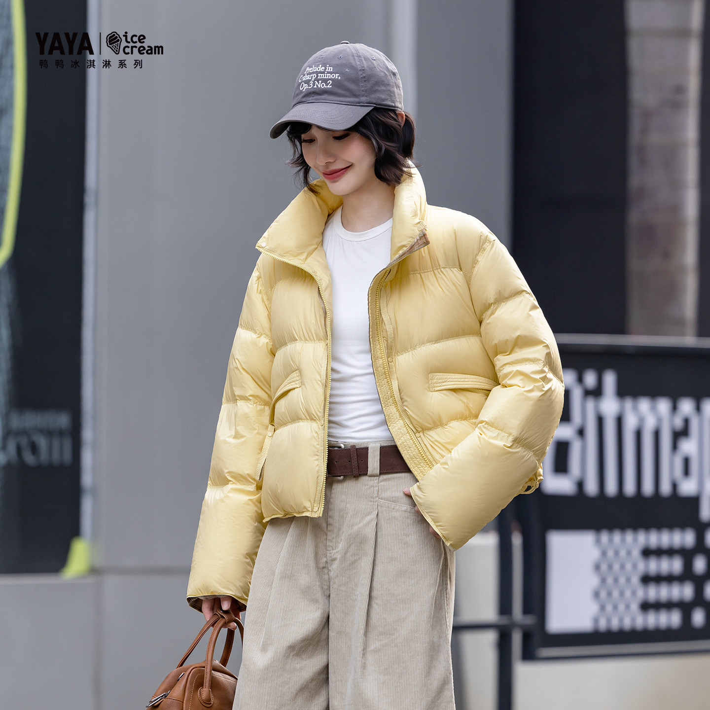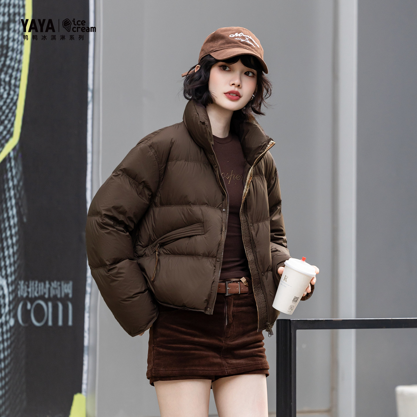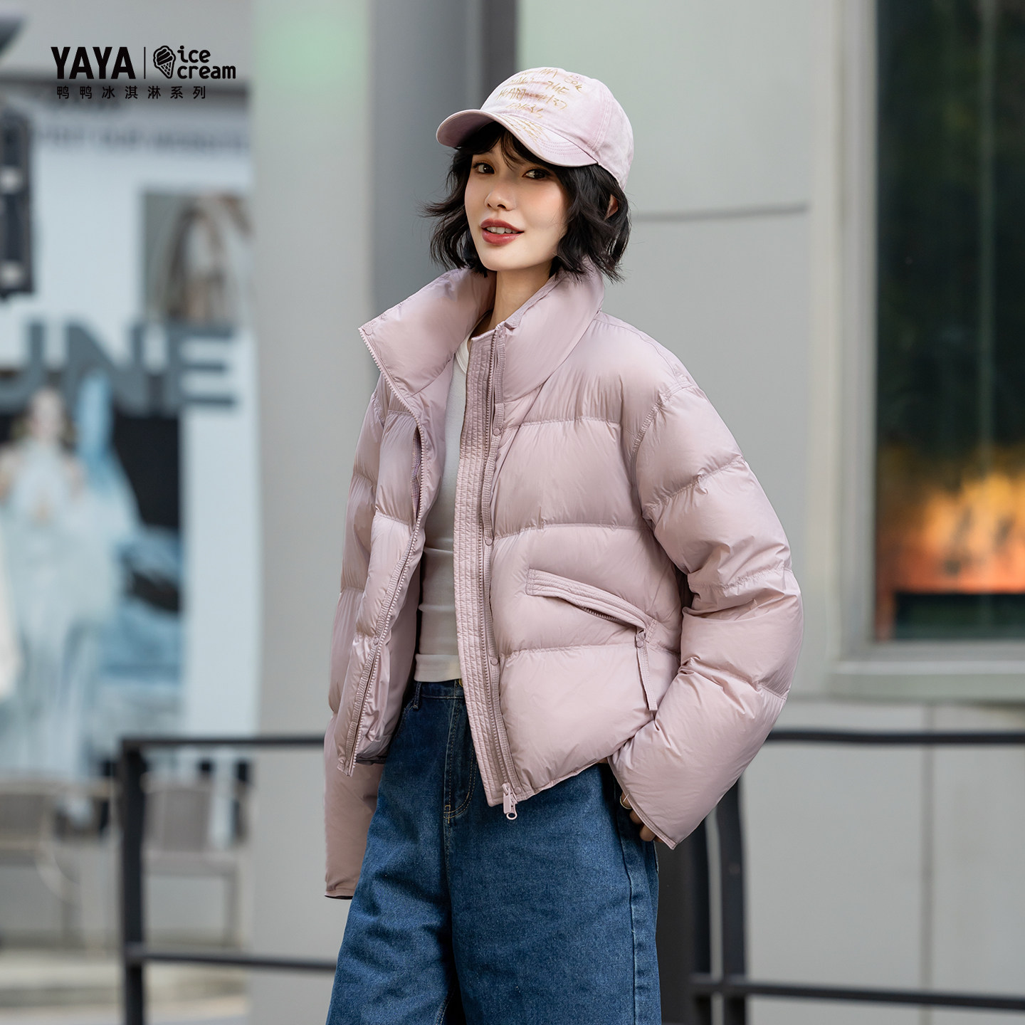 新款 YAYA鸭鸭羽绒服2025冬季 女装 厚款 外套 格子短款 冰淇淋系列