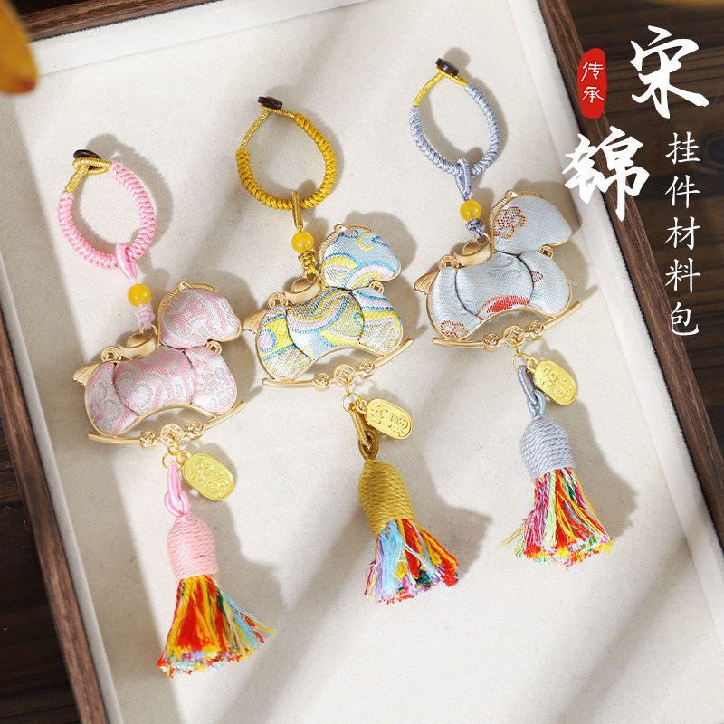 新年宋锦小马挂件手工DIY材料包2026新款 马年非遗钥匙扣包包挂饰