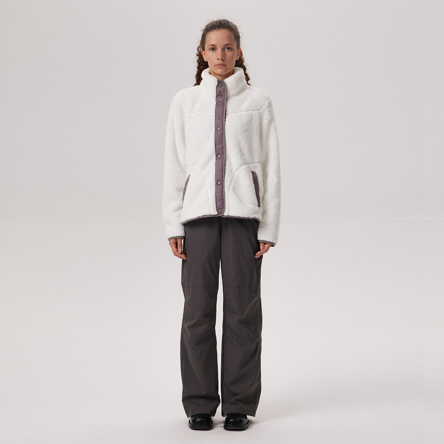 黑色休闲百搭连帽夹克上衣 胖mm双面穿毛绒棉服外套女冬季 大码 女装