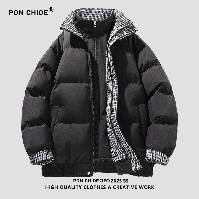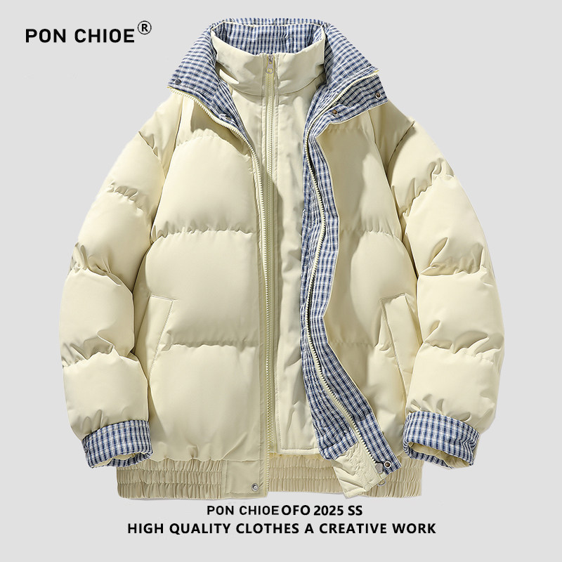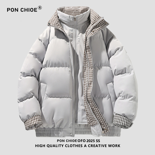 假两件加厚棉衣夹棉外套男 冬季 ponchioe羽绒棉服男女情侣装 新款