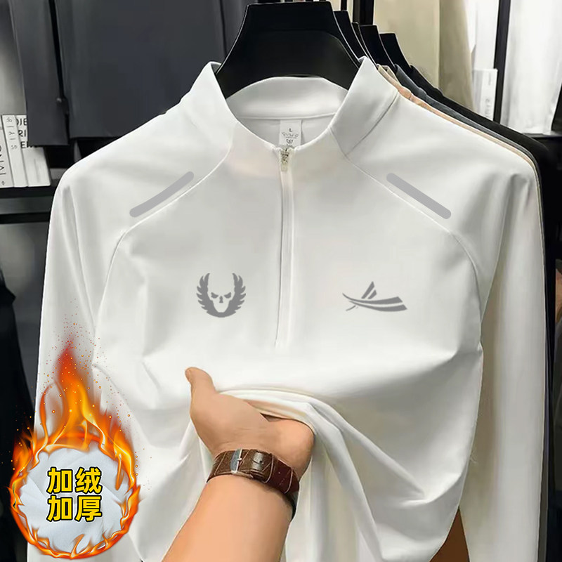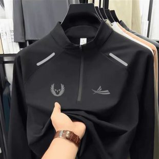 健身跑步速干排汗训练骑行服 T恤男秋季 俄勒冈美式 半拉链运动长袖