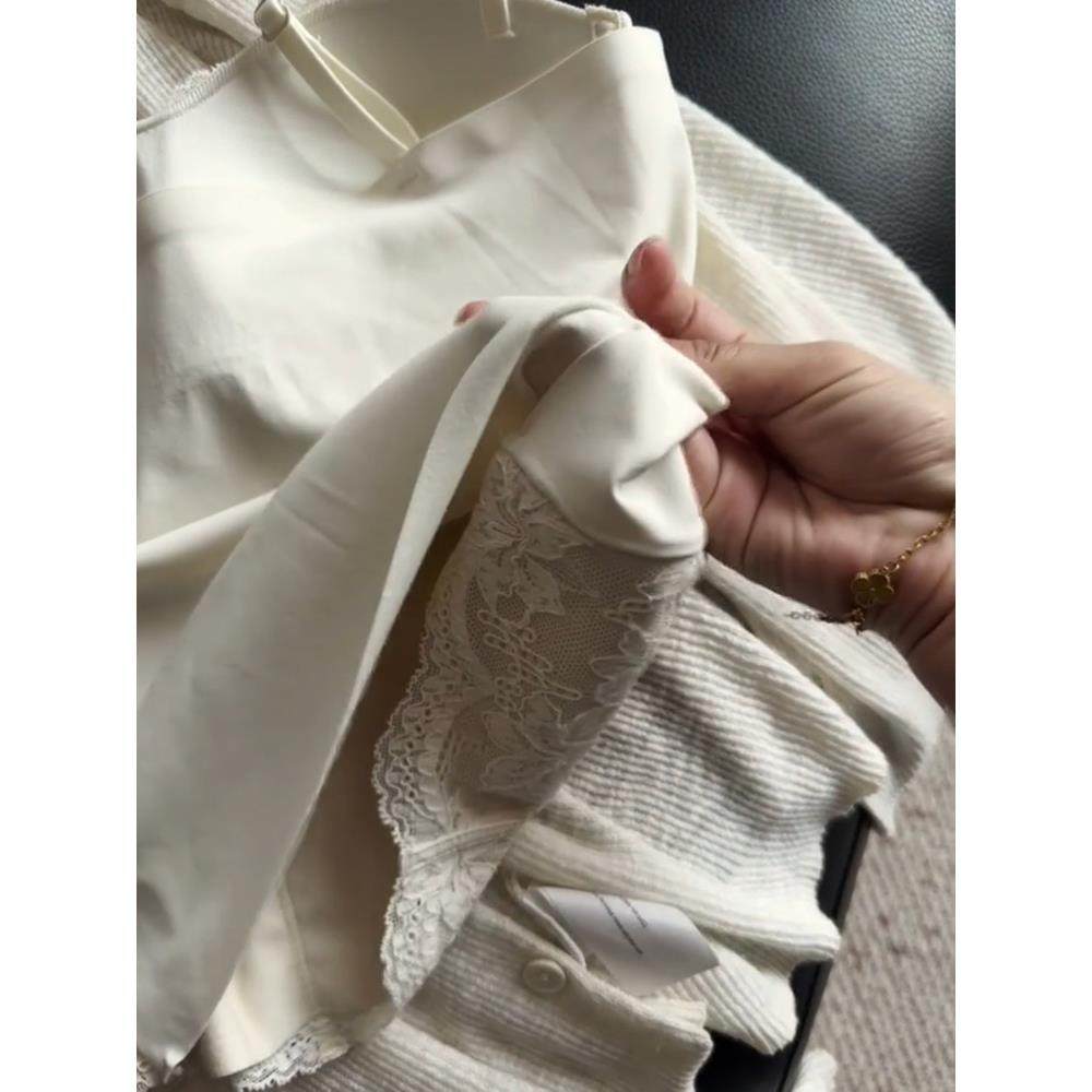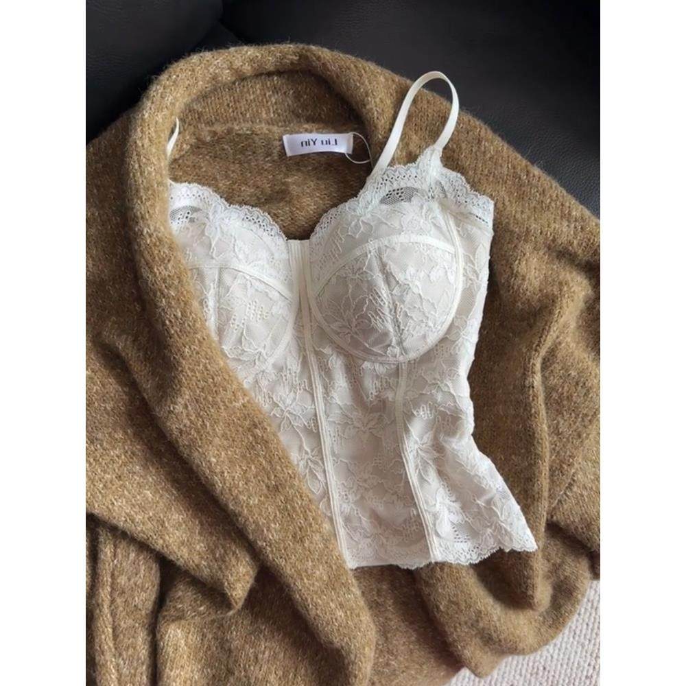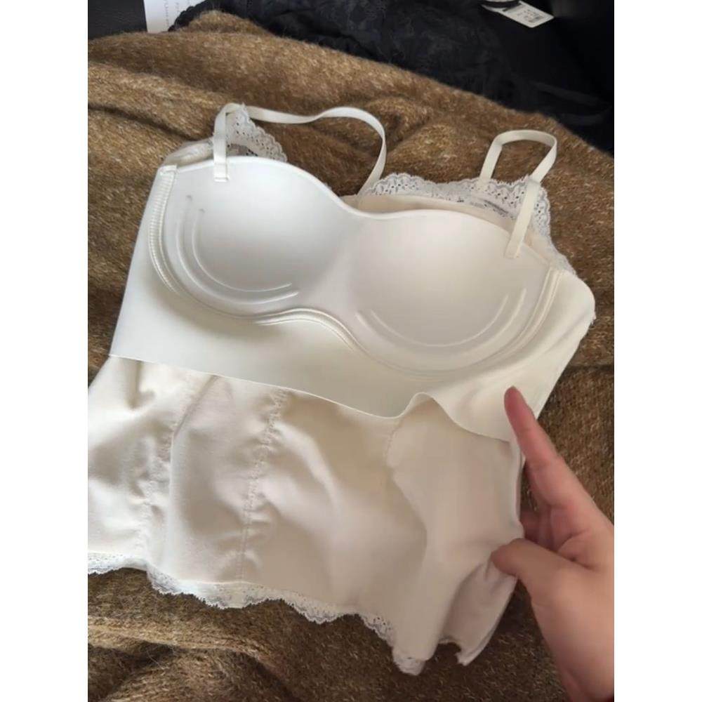 纯欲风蕾丝磨毛保暖带胸垫吊带背心女可外穿修身 显瘦内搭打底上衣