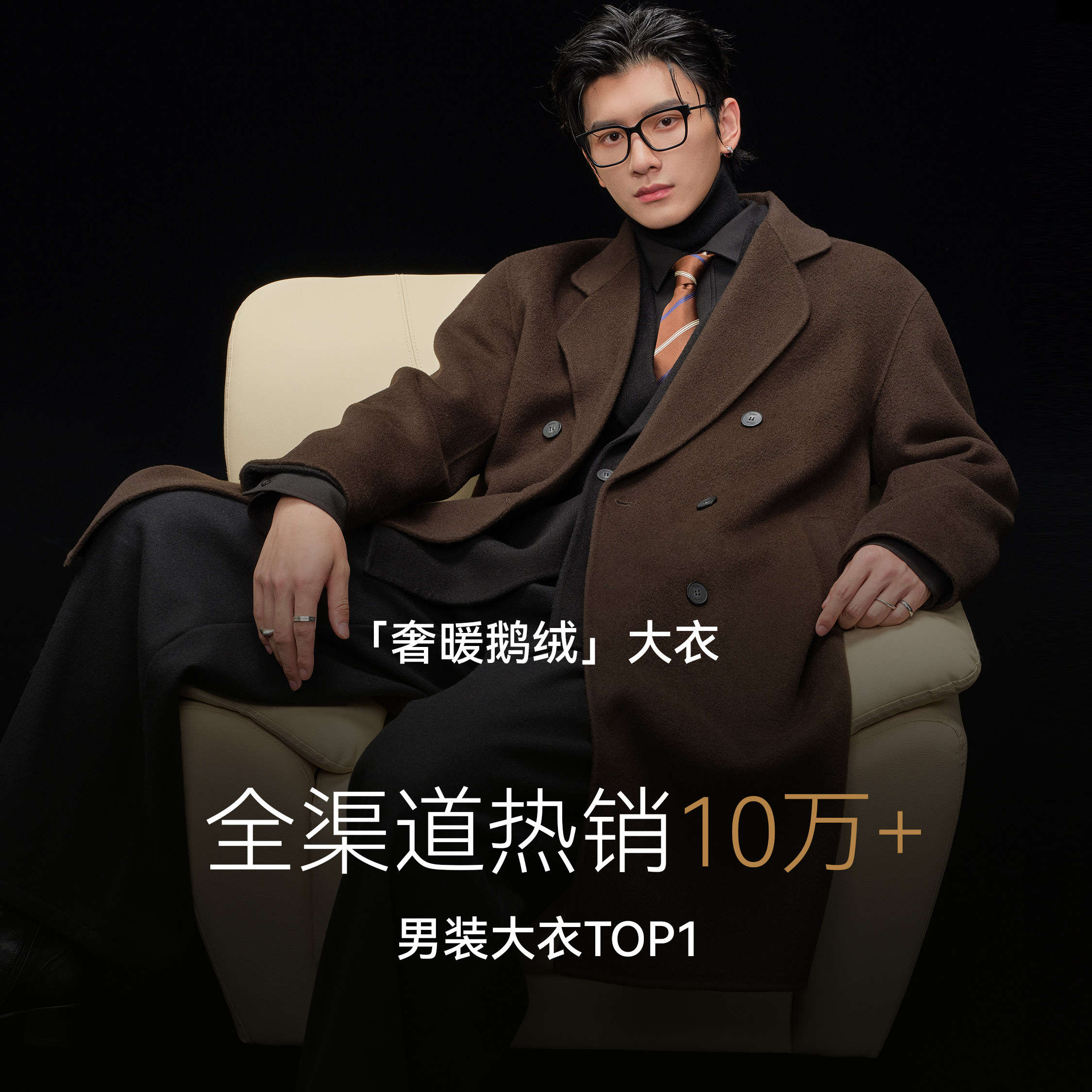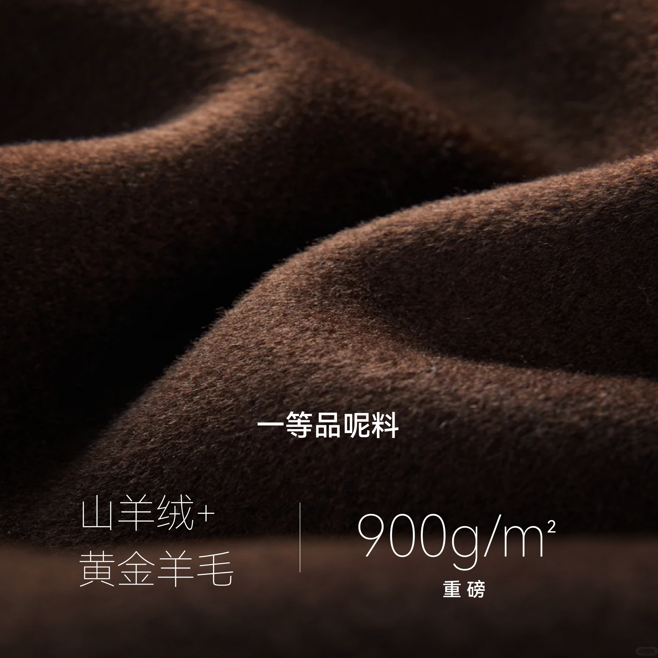 西装 过膝双面羊绒外套 领毛呢子风衣 中长款 纯羊毛双面呢大衣男士