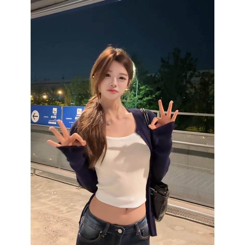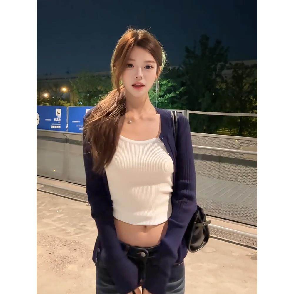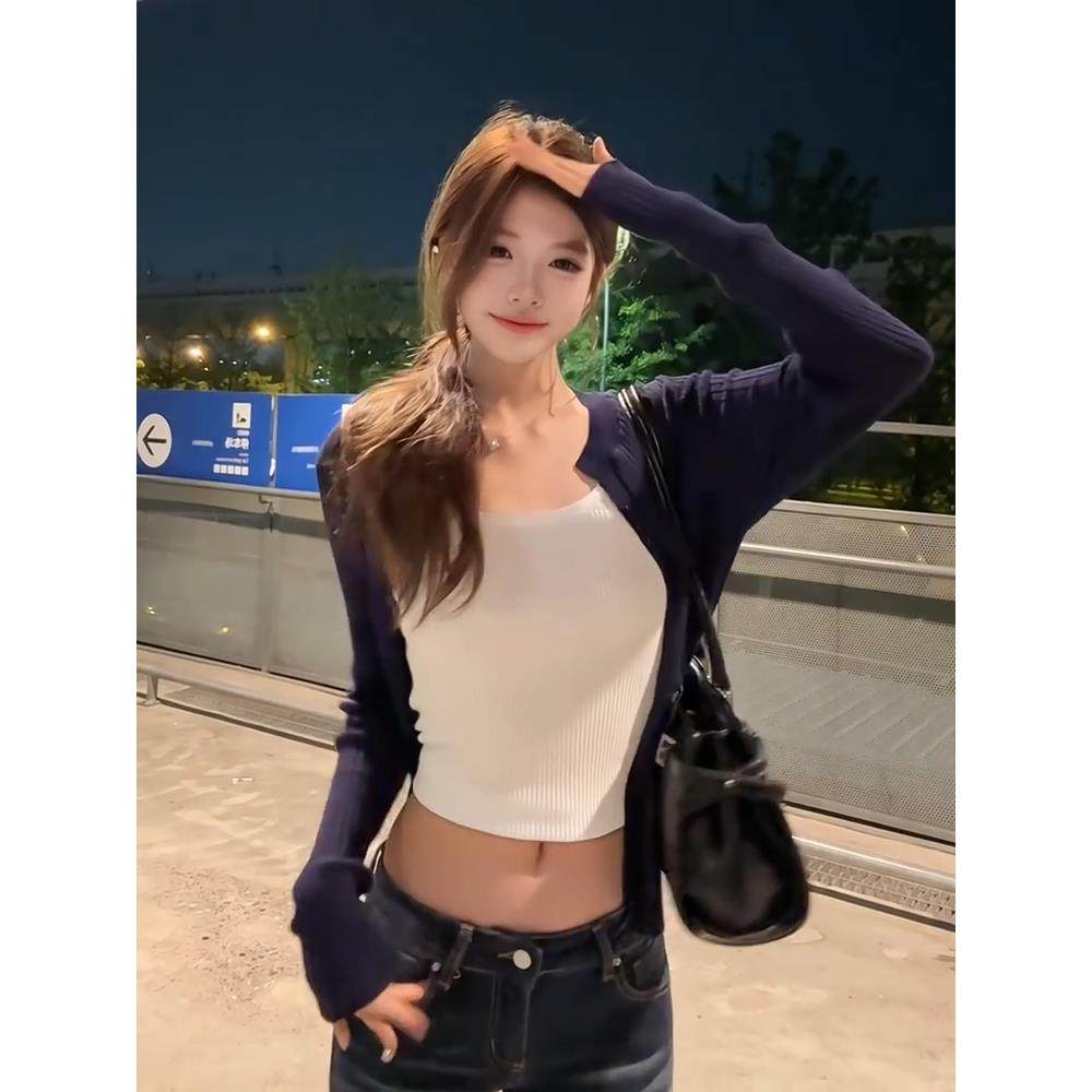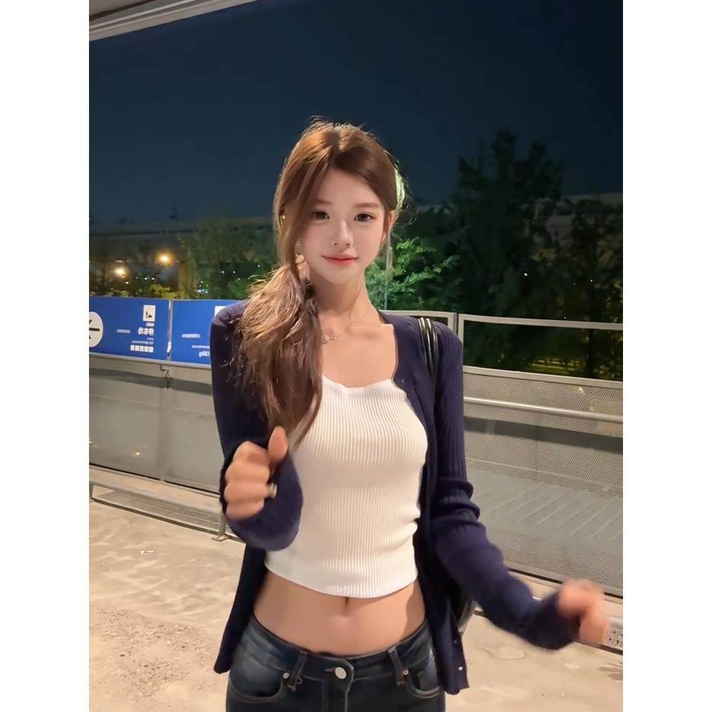 早秋穿搭套装 韩系纯欲风甜辣妹针织开衫 背心吊带两件套女2025新款