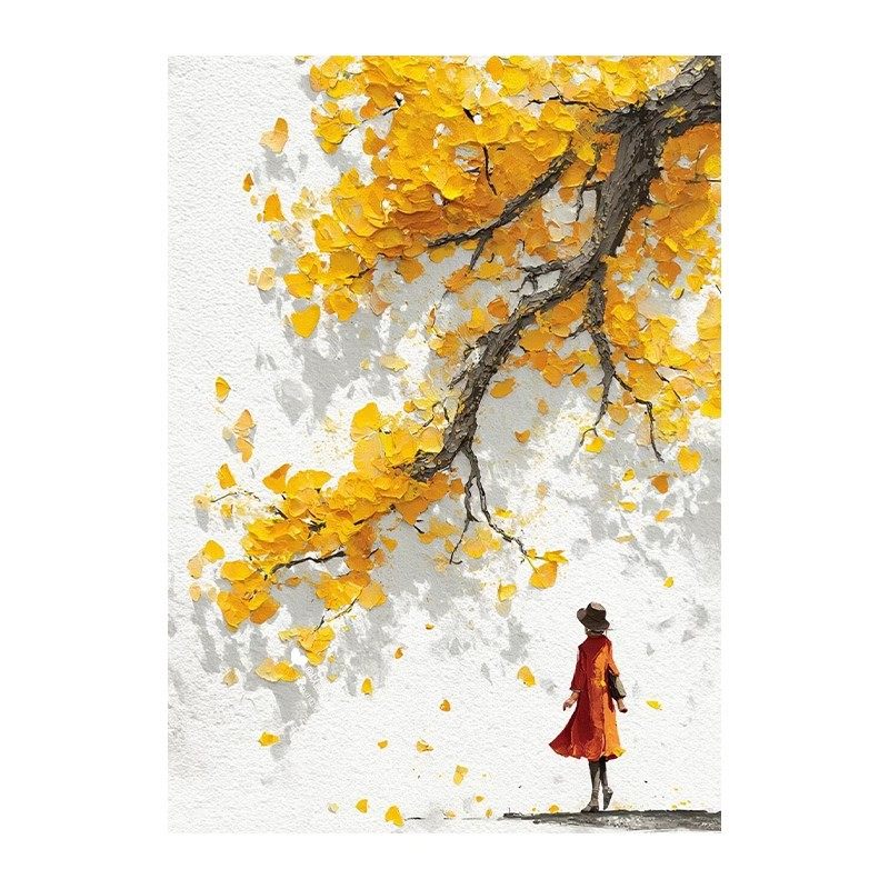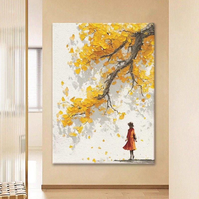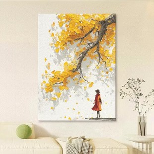 奶油风银杏树人物装 饰画成品仿油画风景唯美治愈高级卧室客厅挂画