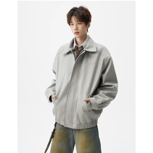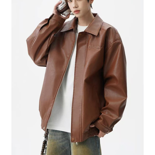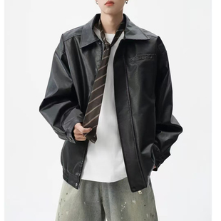 新款 2025秋季 包邮 青少年港风宽松pu皮夹克潮牌情侣外套 满两件