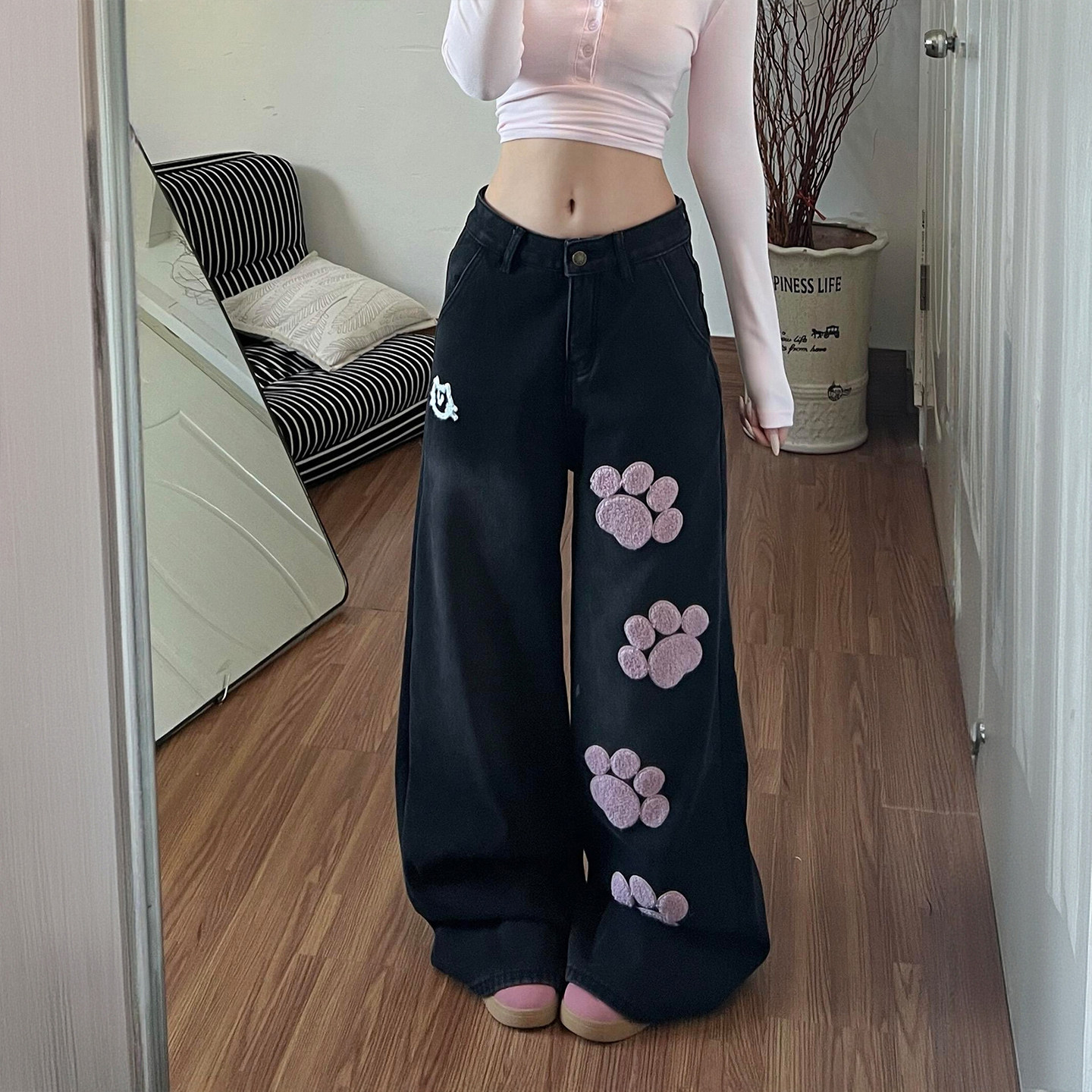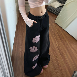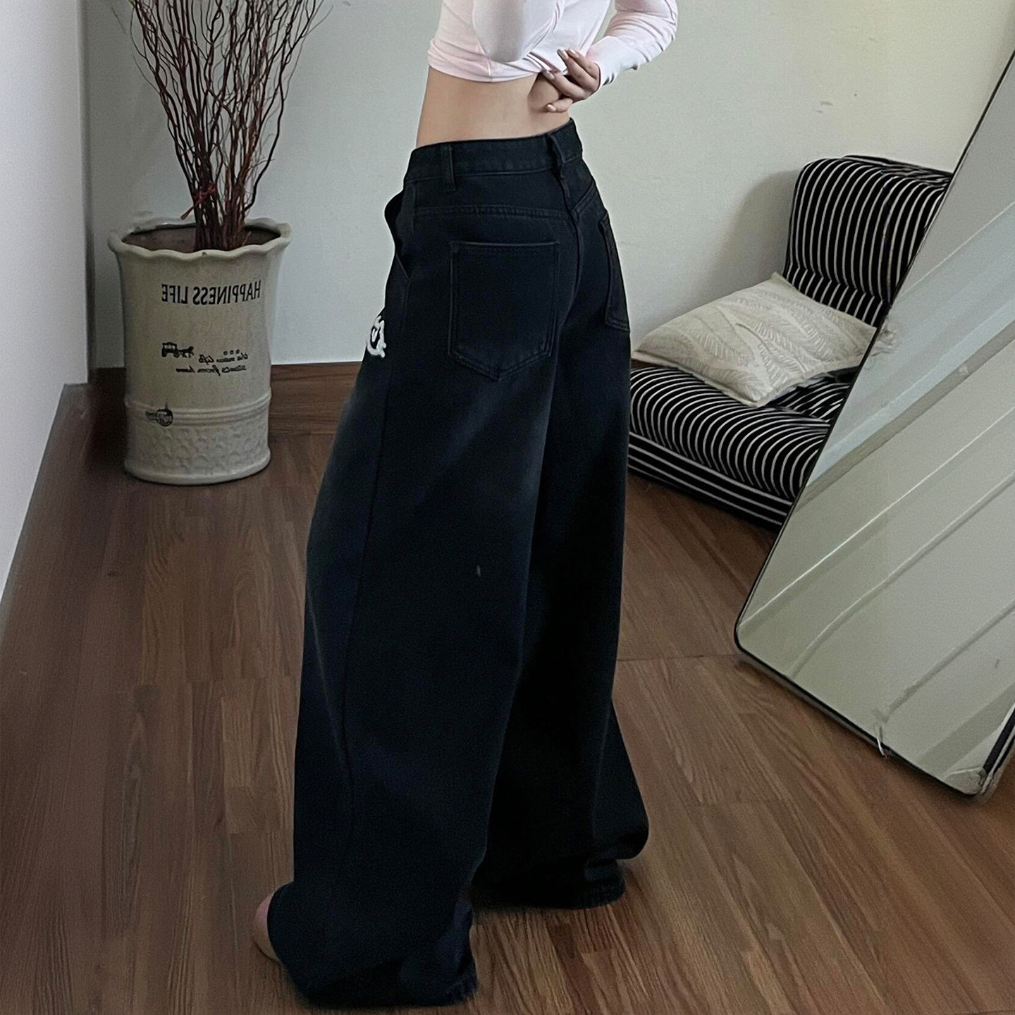 女装 子减龄百搭直筒裤 重工刺绣设计感牛仔裤 胖mm裤 女秋冬新款 大码