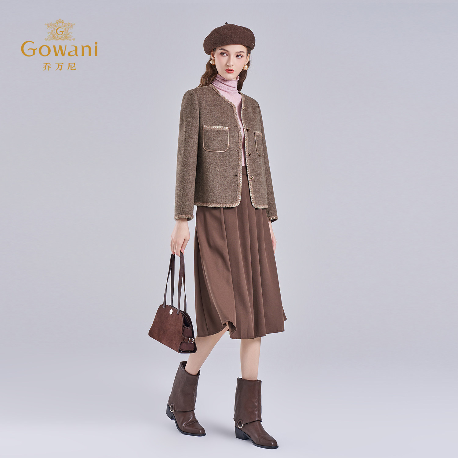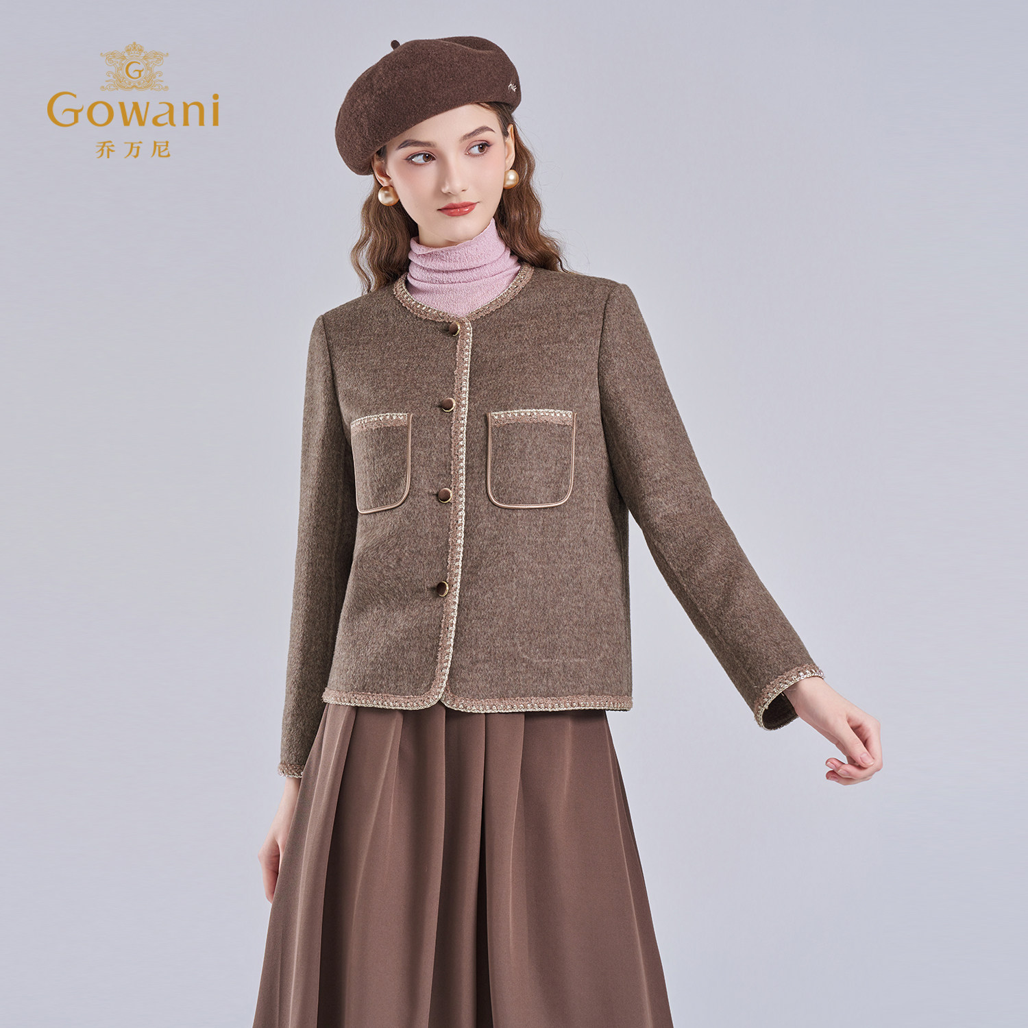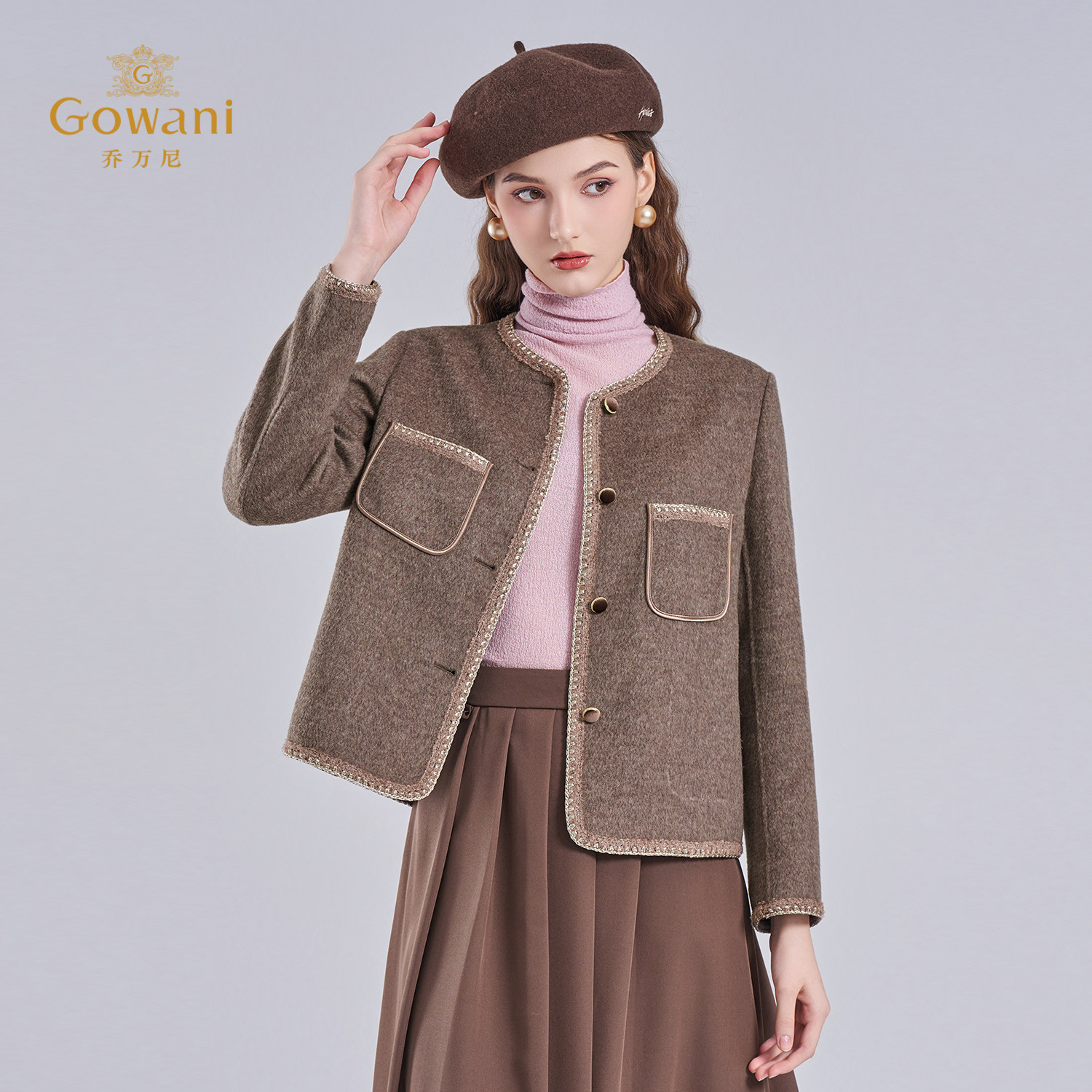 乔万尼气质百搭小香风毛呢外套高级感显瘦短款 绵羊毛大衣ED4B715