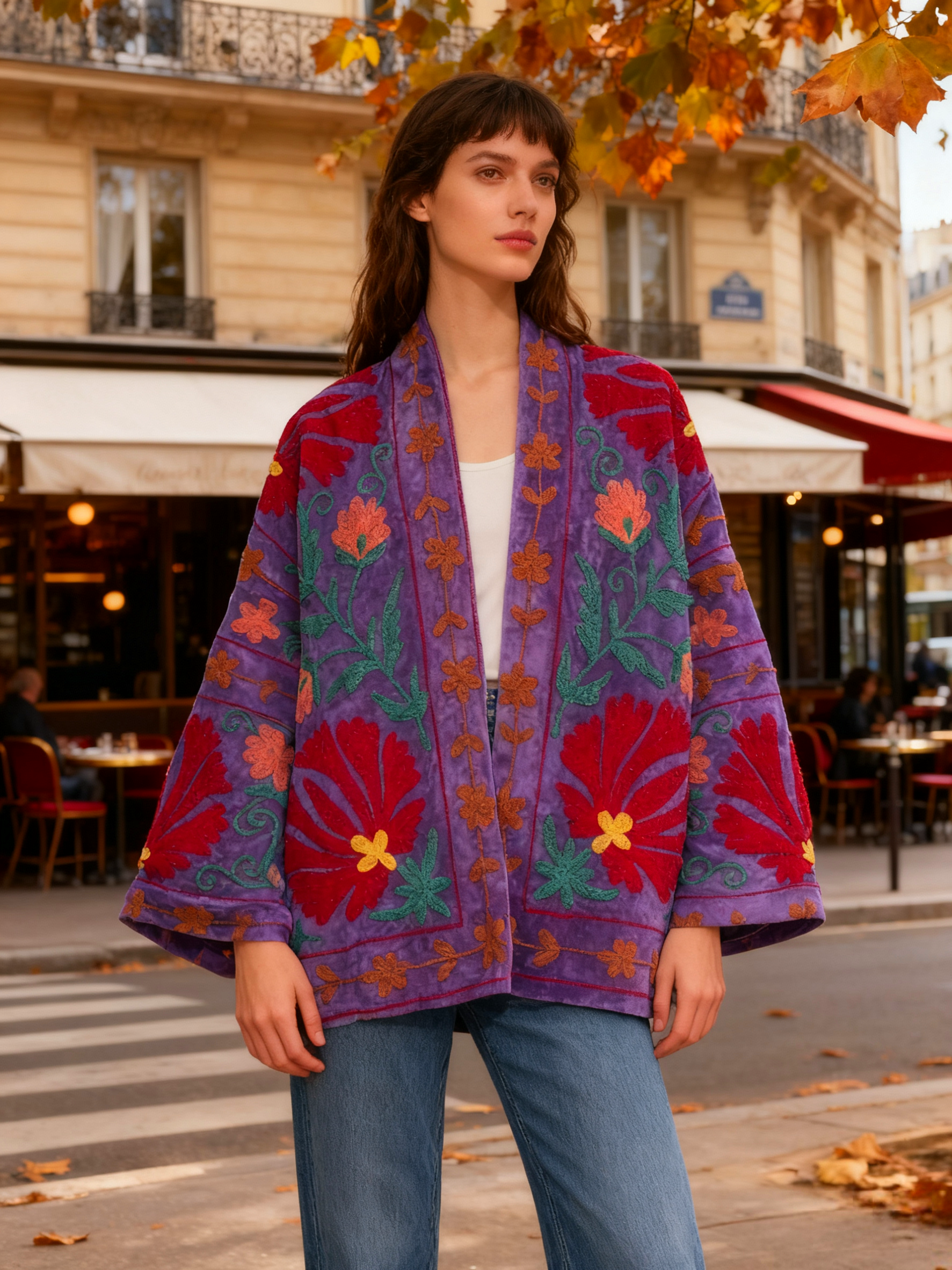 夏萨珑 小众26秋冬suzani刺绣天鹅绒夹克高密度外套 印度进口法式
