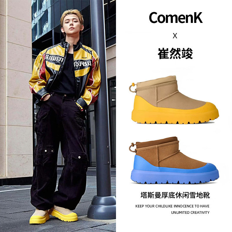 加绒保暖棉鞋 羊皮毛一体冬季 子 塔斯曼彩壳雪地靴男女款 王一博同款