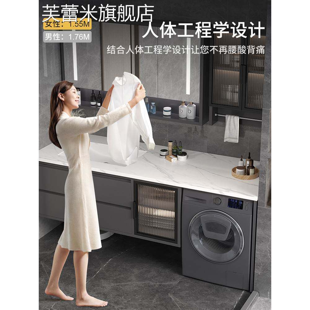 芙蕾米现代简约阳台滚筒洗衣机柜一体浴室柜组合卫生间洗漱台洗手洗脸盆饰品摆件垫垫