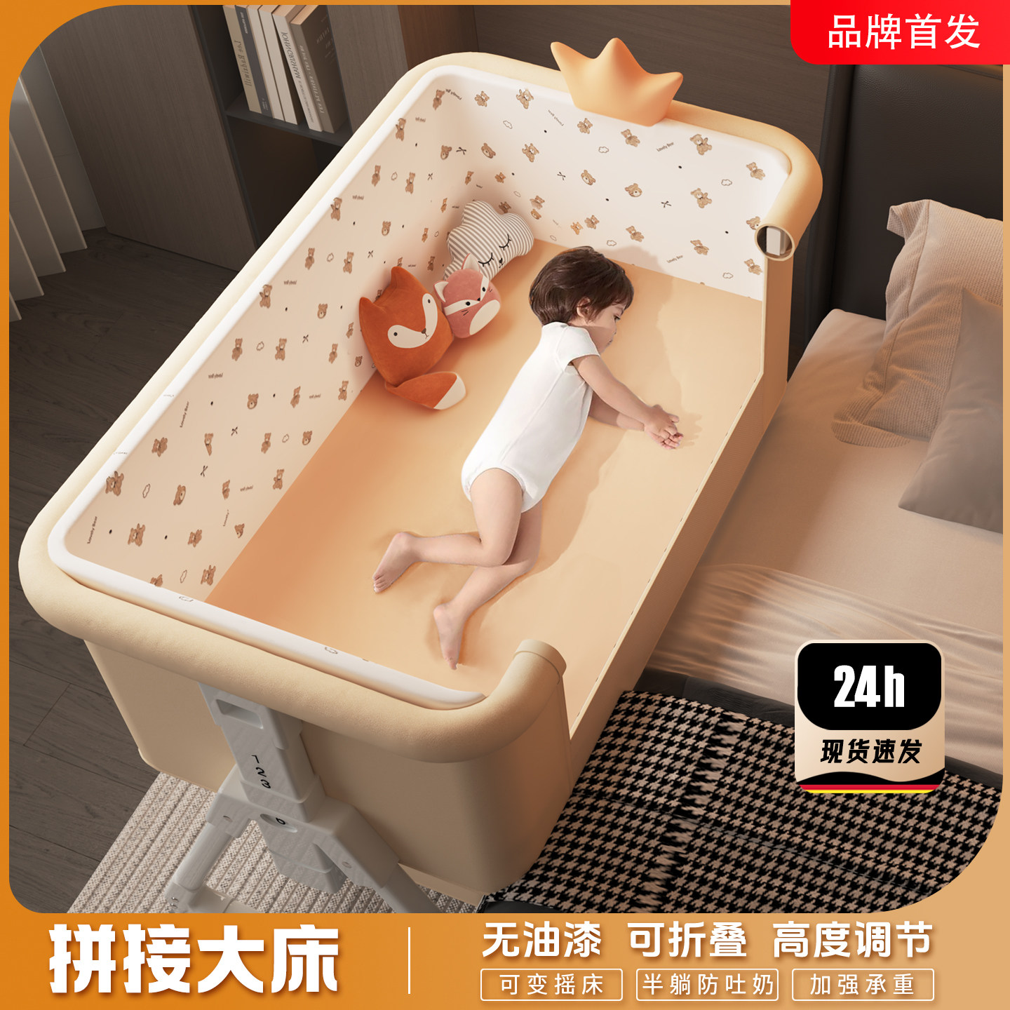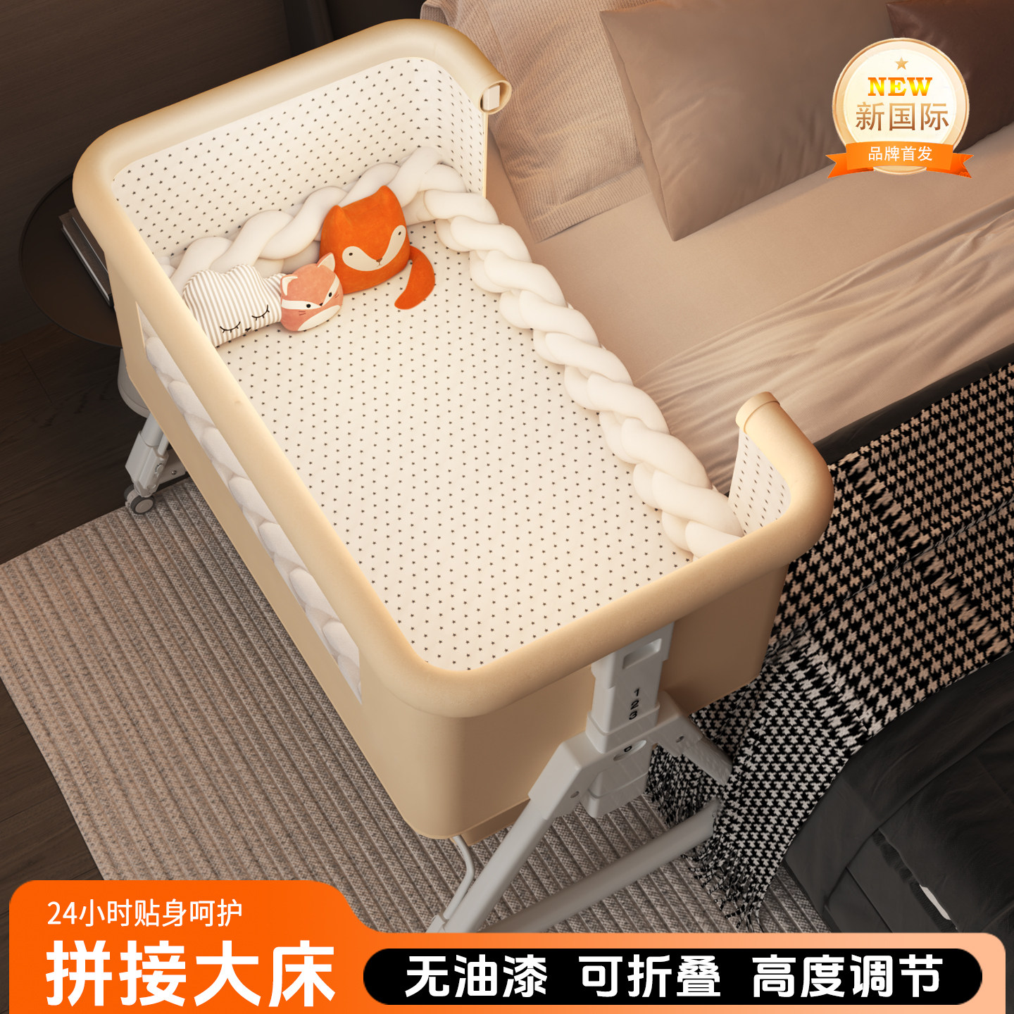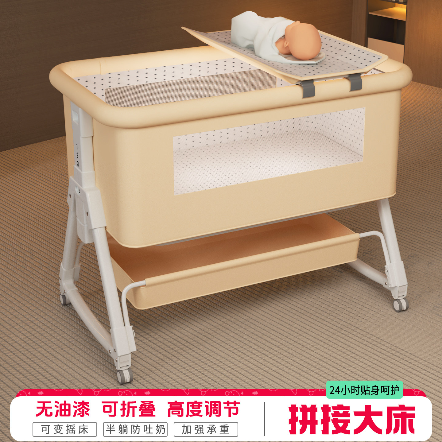 婴儿床宝宝床可移动便携式 摇篮床可折叠多功能bb床新生儿拼接大床