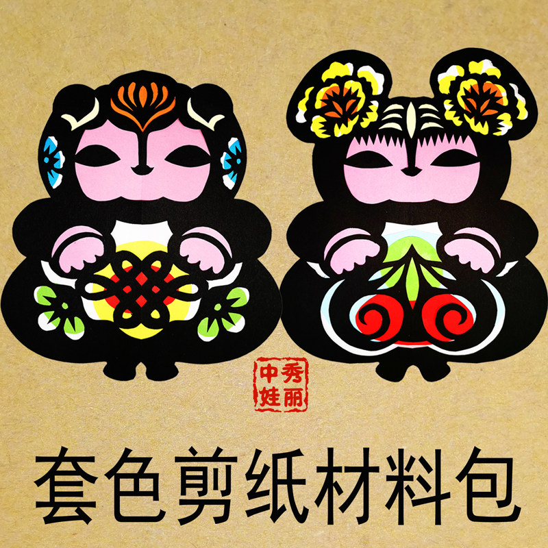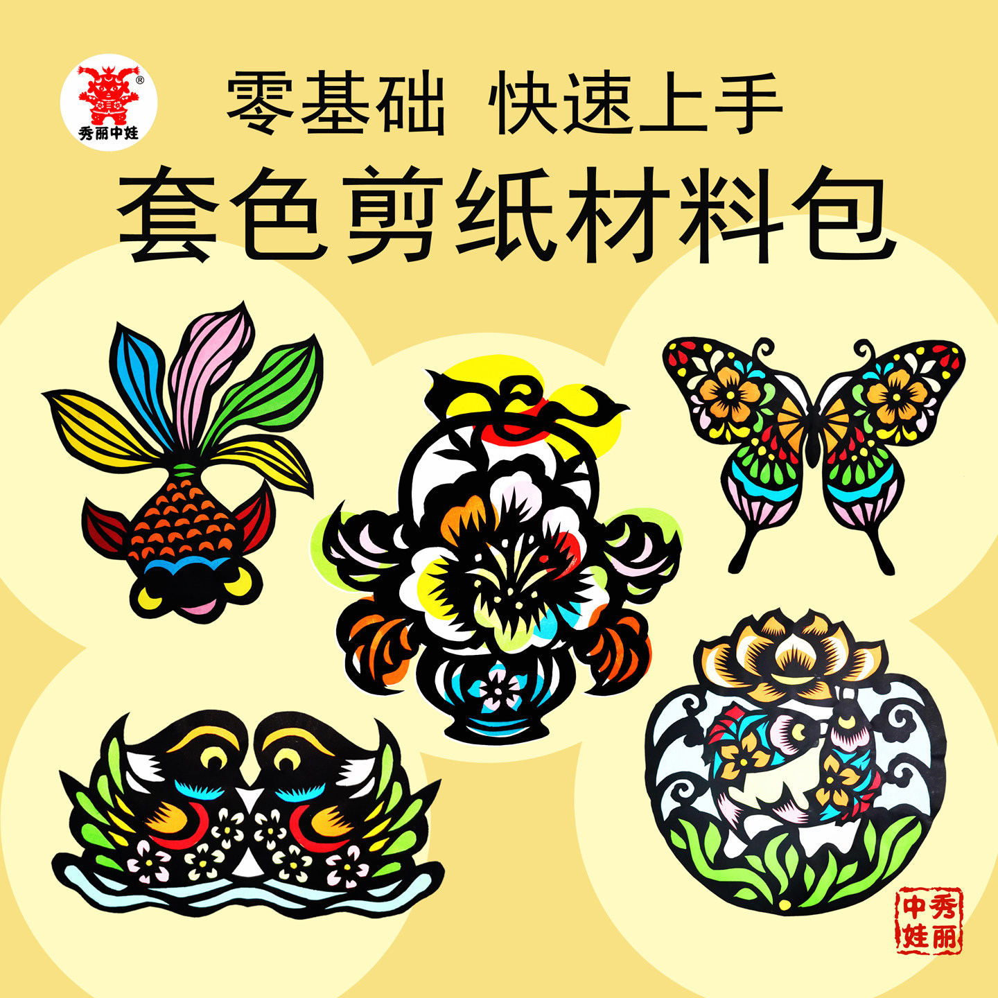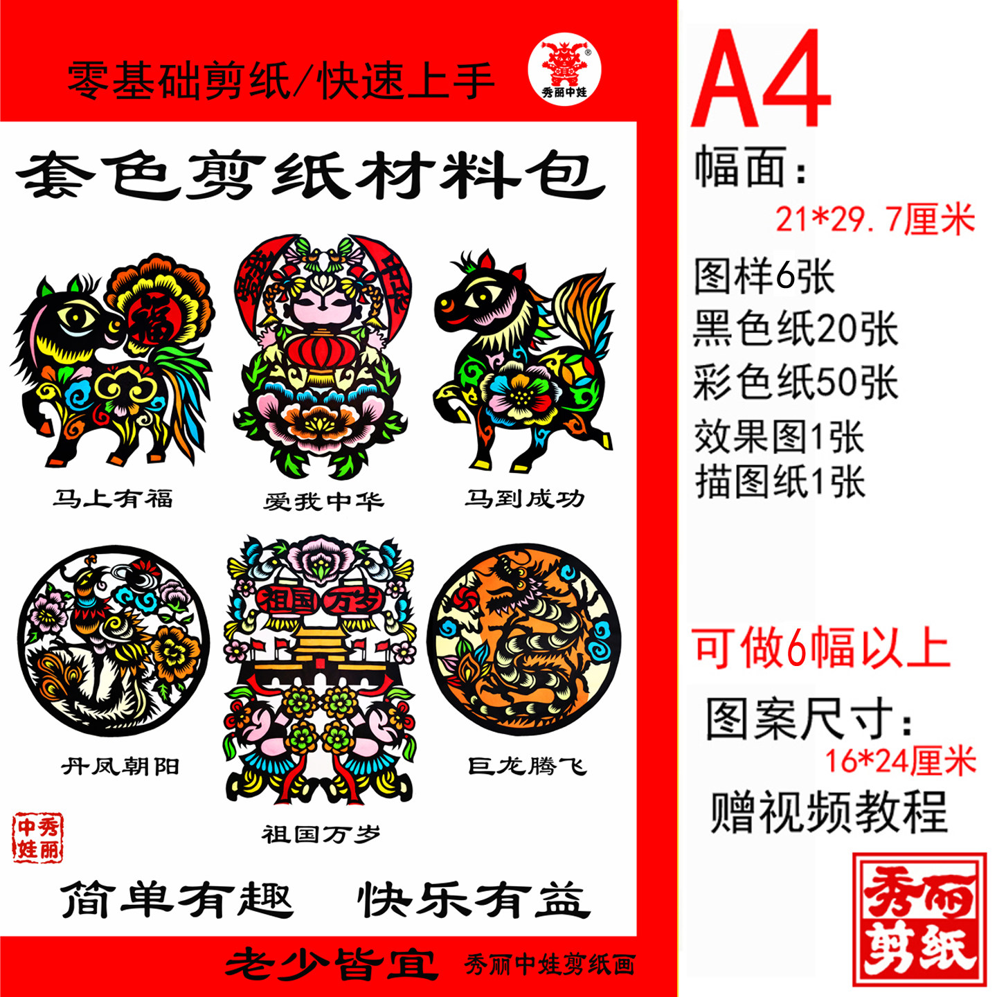 套色剪纸专用纸手工彩色底稿成品黑色刻纸工具套装 儿童剪纸材料包