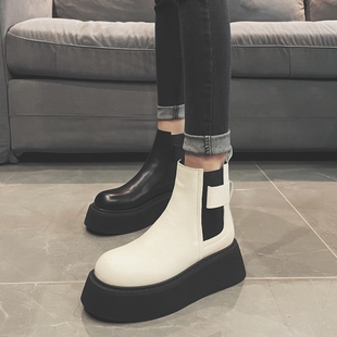 达芙妮加绒东北保暖英伦风马丁靴女2025秋冬新款 白色短靴雪地棉鞋
